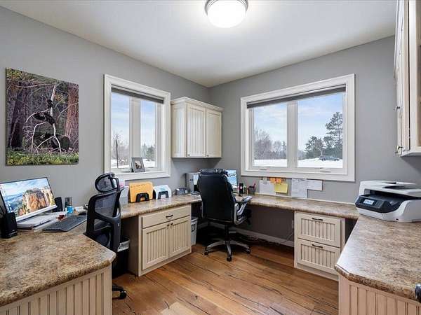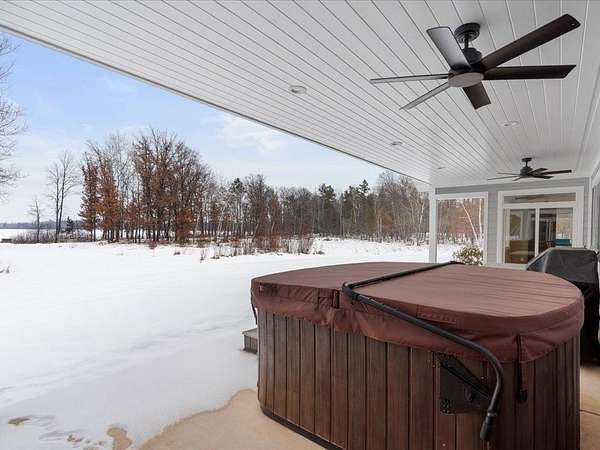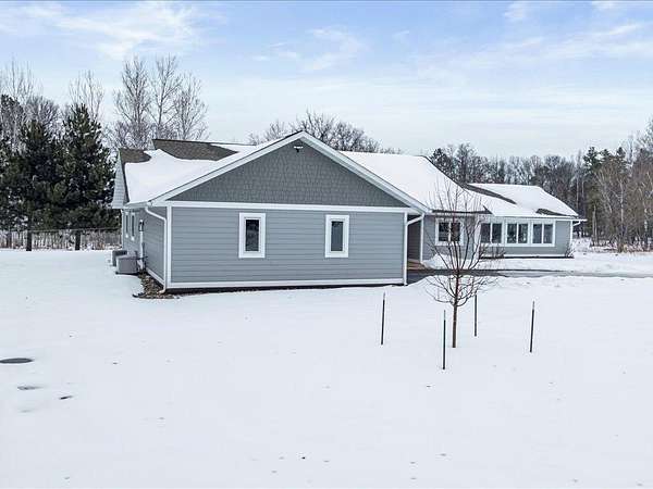 Beautifully set on 8.65 private acres along the shores of Campbell Lake in Merrifield, this refined one-level home or cabin offers 280 feet of pristine sandy lakeshore and a rare blend of privacy, comfort, and thoughtful design.