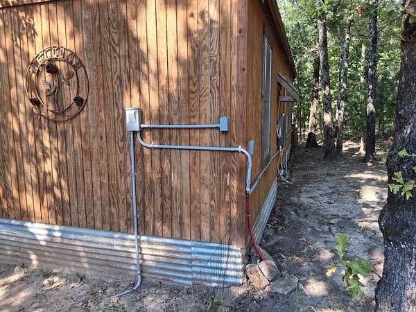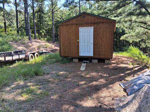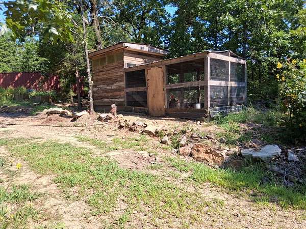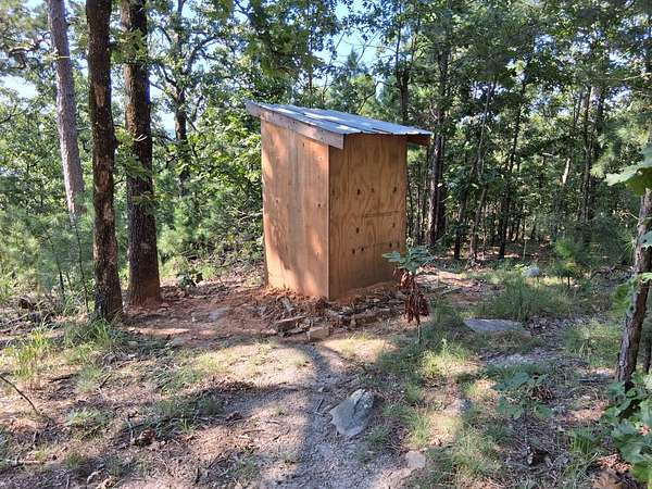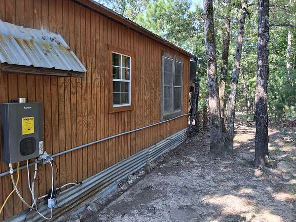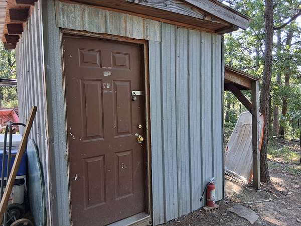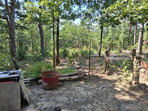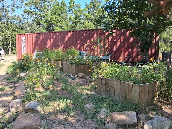 This 30 acres is off-grid with a 1700 watt solar system and back up generator. No need for rain catch, this home has a 125 ft well to furnish your water needs. 3 miles down WaterTower road and has 2 14x32 buildings, one is complete with 1 bed 1 bath and living room and kitchen. The other building just needs to be completed inside the way you like it. His and Her Conex containers for storage or workshop. The property has a complete chicken coop and above ground grow containers to start growing your vegetables. A road has been cut to your own private hunting area that has whitetail deer, bear and lots of wildlife.The property has a 350 gallon rain catch tank that can be hooked up to a gutter system to water your garden and animals,and a 350 gallon septic tank. The property has 3 build sites and 1 could have a view of Talihina Lake if a few trees were cut for the view. The well house is insulated and would is big enough to have a washer and dryer with electric and water already there. This is a rare find and the work has been done to give you a start in making it your dream property