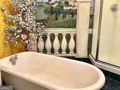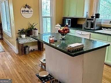 Escape to 10 private acres just beyond the Georgia-Alabama border, featuring a serene lake, spring-fed creek, and scenic trails. Lush fruit trees-peach, cherry, persimmon, and more-attract abundant wildlife. The 3-bedroom, 3-bathroom home offers a finished basement with a kitchen, clawfoot tub, and storm shelter. Recent updates include a whole-home water filter, a new roof, lifetime-guaranteed windows, and an HVAC system under warranty. Enjoy a new rear deck with a pergola and updated front rails. A perfect blend of nature, comfort, and modern upgrades! The impressive 50x60 heated and cooled shop is a craftsman's dream. An additional temperature controlled dog kennel. Call for your private showing. Licensed in Alabama & Georgia.