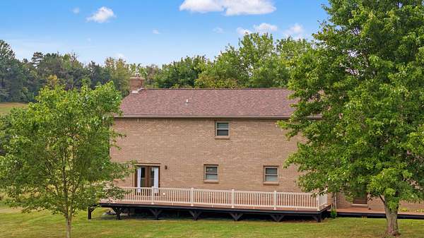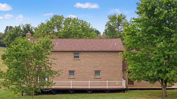 Welcome to 1233 Johnson Road! This beautiful all-brick 1.5 story home is perfectly situated on 16.52+- acres just minutes from the Bluegrass Parkway, offering both convenience and a serene country setting. Inside, you'll find 3 spacious bedrooms and 3 full baths, a comfortable living room, a family room with an electric fireplace, a well-designed kitchen, and a bright dining area. Flooring throughout includes hardwood, tile, laminate, and carpet for a warm and inviting feel. Step outside to enjoy the peaceful surroundings from the spacious rear deck or the welcoming covered front porch--ideal spots for relaxing or entertaining. Additional highlights include a 2-car attached garage, geothermal heating and cooling, a concrete driveway, and a bonus room currently used for storage that could easily be finished to suit your needs. The property is well-equipped with a 4-stall shed with extra storage, two ponds, and city water, making it both functional and picturesque. With its blend of comfort, space, and natural beauty, this home is ready for you to move in and make it your own! Please note that some of the photos have been virtually staged. Owner has talked to Spectrum - lines are run and it is available to the property if you choose to connect. Buyer to verify