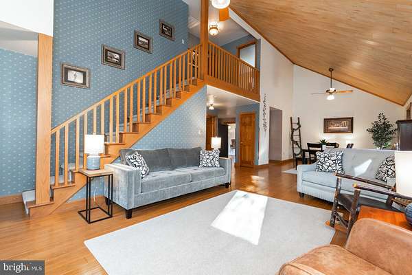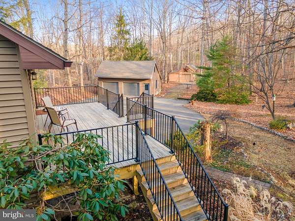Welcome to 12333 Mummert Road, a private retreat nestled on nearly 25 acres of wooded countryside in the scenic hills of Clear Spring, Maryland. This charming contemporary home offers the perfect blend of peaceful seclusion, natural beauty, and comfortable living, just a short drive from town amenities. Tucked down a winding driveway and surrounded by mature trees, the property provides exceptional privacy and a true connection to nature. Built in 1986, the home offers approximately 2,200+ square feet of living space with 3 bedrooms and 2 bathrooms, featuring warm wood accents, vaulted ceilings, and an open, inviting floor plan. The dramatic vaulted great room showcases beautiful wood ceilings and hardwood floors filled with natural light. French doors open to a spacious deck overlooking the wooded landscape, creating the perfect setting for morning coffee, outdoor dining, or watching wildlife pass through the property. The kitchen flows easily into the dining and living areas, ideal for both everyday living and entertaining. A main-level primary bedroom provides convenience and comfort, while two additional bedrooms and a loft overlooking the living room offer flexible space for guests, office, or hobbies. Outside, the property truly shines. The expansive acreage offers endless possibilities for recreation, gardening, hunting, or simply enjoying the quiet of the surrounding woods. The property also includes multiple outbuildings, a detached two-car garage, and an attached garage, providing abundant space for vehicles, equipment, and workshop needs. Located in rural Washington County near the small historic town of Clear Spring, this home offers the serenity of country living while remaining accessible to Hagerstown, I-70, and outdoor recreation throughout western Maryland. Whether you're searching for a private homestead, weekend escape, or nature lover's paradise, 12333 Mummert Road delivers a rare opportunity to own a peaceful slice of Maryland countryside.