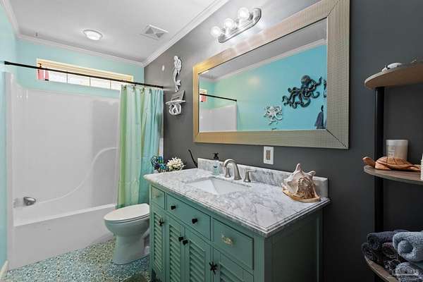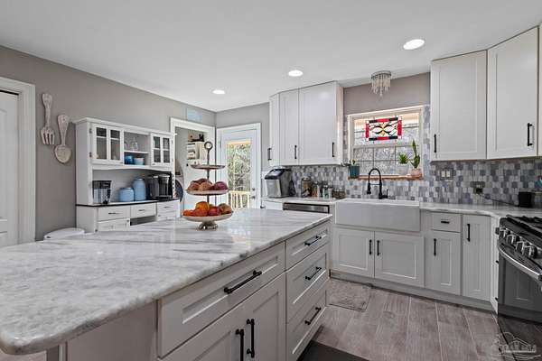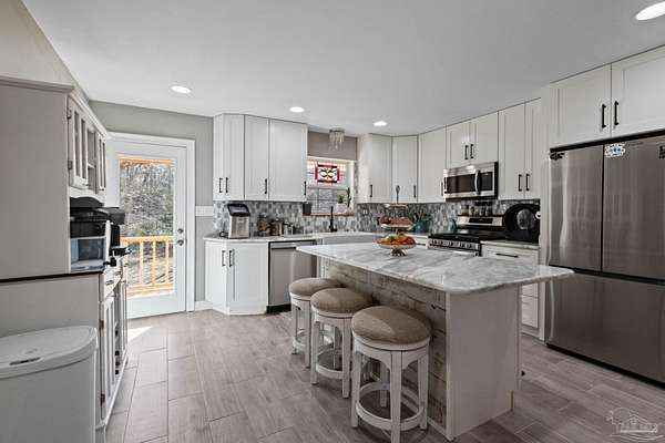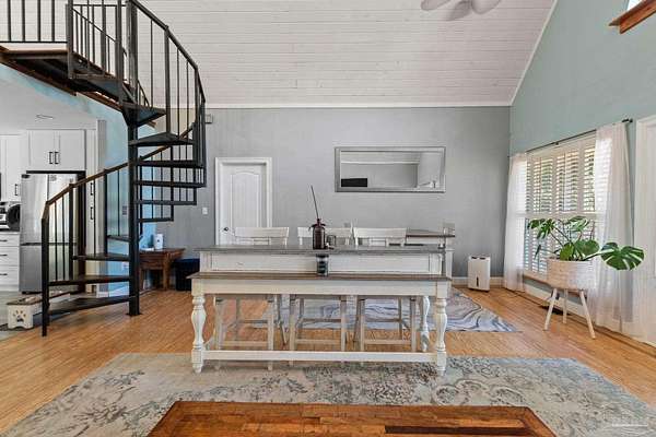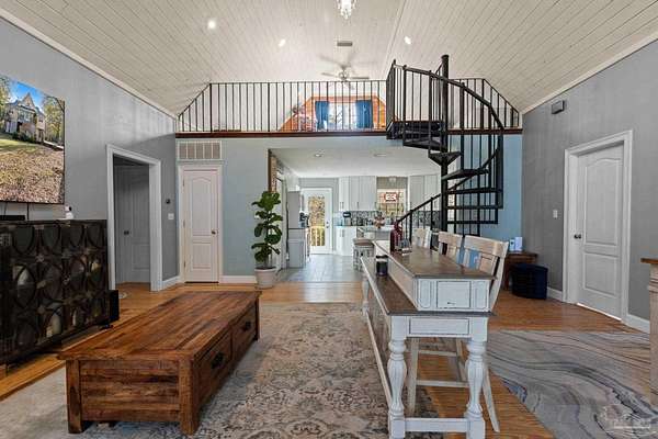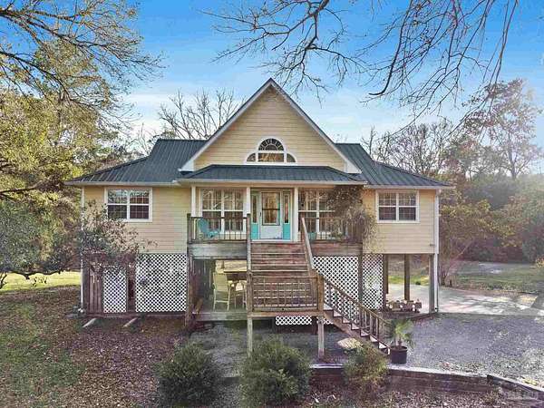 Experience the perfect blend of rustic charm and modern luxury in this stunning, fully renovated retreat situated on nearly two private acres along the serene banks of Sandy Creek. The heart of the home features an open floor plan highlighted by soaring tongue-and-groove cedar ceilings, rich wood floors, and a signature spiral staircase leading to a versatile loft space. You will love the completely updated kitchen, now featuring premium gas appliances and stylish finishes that seamlessly integrate with the home's natural aesthetic. Designed for comfort and efficiency, the residence boasts a split floor plan for maximum privacy, including a spacious primary suite with its own private deck overlooking the water. The primary bath offers a spa-like experience with a separate shower and soaking tub. Practical upgrades abound, including a durable metal roof and a tankless water heater. Whether you're enjoying the view from the deck or exploring your expansive creek-front lot, this home offers a rare, turn-key sanctuary in a truly picturesque setting. Adjacent lot FSBO. Tour Today!