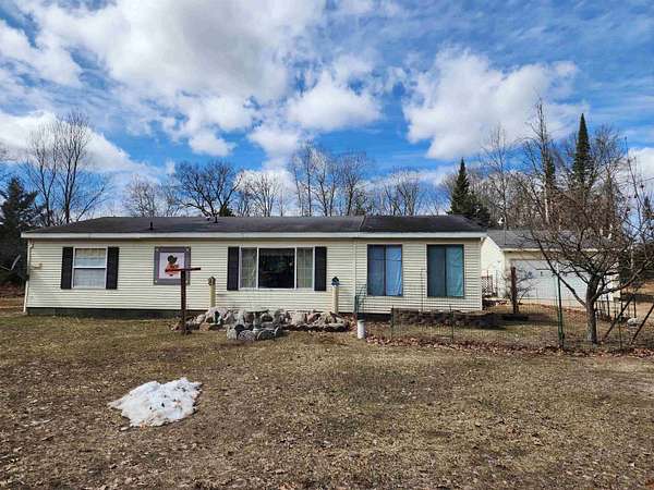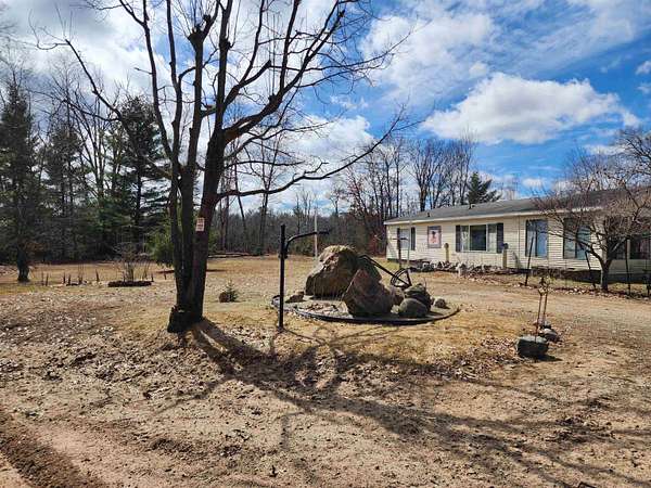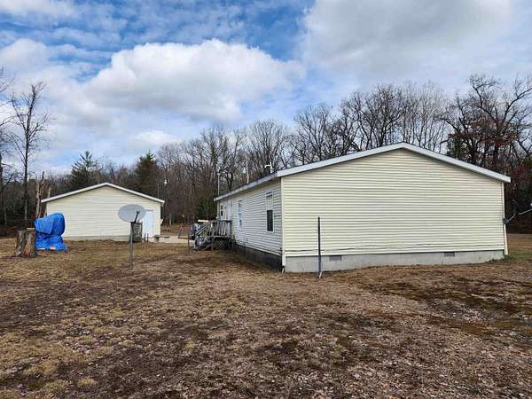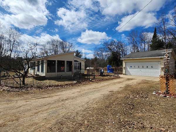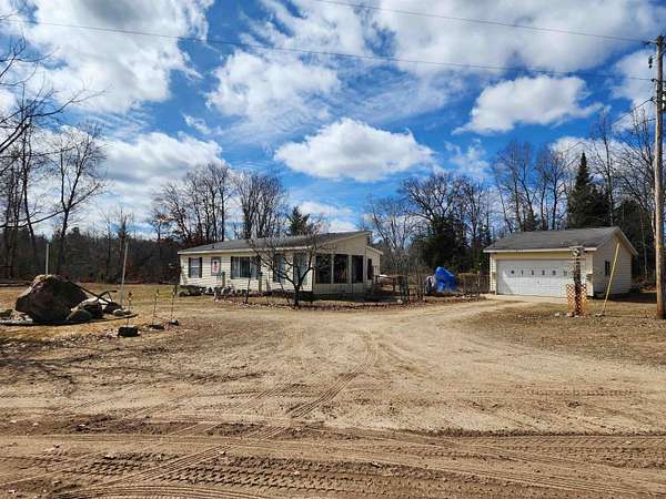 Well-maintained 3-bedroom, 2-bath manufactured home offering 1,144 finished square feet on a peaceful 3.90-acre setting with no close neighbors. This property borders the overflow of the Muskegon River, creating a serene, nature-filled backdrop. The home has been thoughtfully updated for accessibility with a wheelchair ramp, widened doorways, and an updated primary bathroom featuring an improved shower. Recent weatherization upgrades help keep the home warm in the winter and cool in the summer for year-round comfort. Includes stove, refrigerator, washer, dryer, and an additional dryer in the detached 18x24 garage. Enjoy the outdoors with a mature apple tree and plenty of space to roam. Furnishings are negotiable (pudding stones excluded). Great opportunity for a private up-north retreat or year-round living!