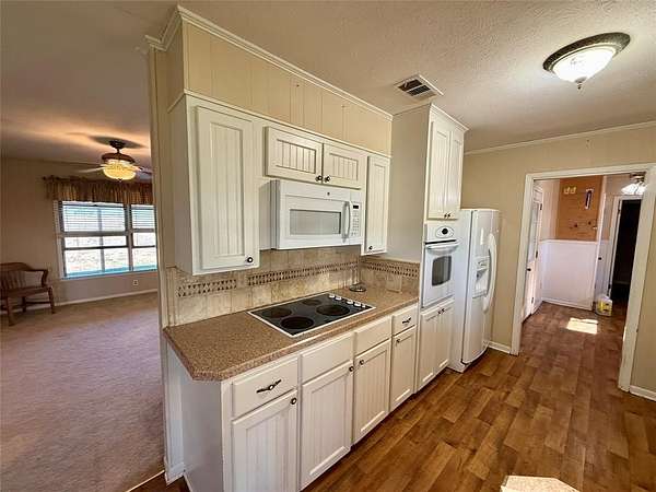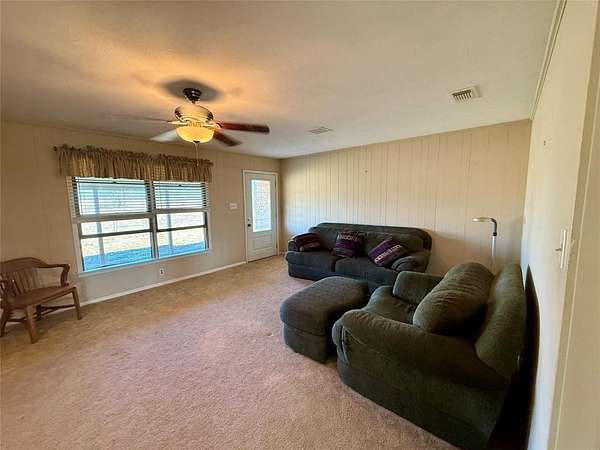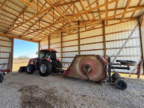 The property is fenced and cross-fenced into improved pastures with coastal Bermuda and native grasses. Each pasture has its own surface water, supported by five surface tanks. Board Creek runs north to south through the ranch, creating a scenic corridor with heavy tree cover including mature pecan, post oak, elm, mesquite, and live oak trees. Large scattered shade trees enhance the gently rolling terrain and beautiful views. Access is via gravel county road with an attractive pipe entrance.
