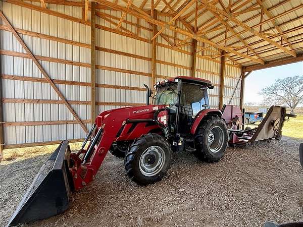 Equipment included: 2018 Mahindra 8100 (approx. 240 hours) with bucket loader and brush grapple, Mahindra 3615 heavy-duty batwing mower, 8-ft blade with chisel rippers, utility trailer, older John Deere tractor with front-end loader and shredder, and a Gravely zero-turn mower.