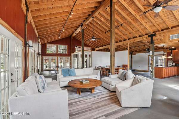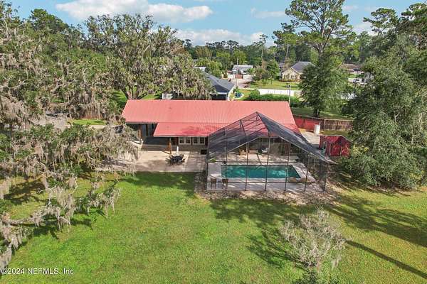 One-of-a-Kind 3.75 Acres Estate in the Heart of Mandarin. Discover endless possibilities whether you're seeking an amazing multi-structure compound, income-producing short-term rentals or an exceptional event space, this estate delivers unmatched versatility and value. The expansive Main Residence spans over 5,000 square feet featuring 3 bedrooms, 2.5 baths, soaring ceilings and spacious living areas. Additional highlights include a Pool Pavilion with full kitchen and screened pool, two Private Guest Cottages perfect for family, guests or short term rentals, Outdoor Pavilion, Workshop and RV Storage plus an additional Garage offering flexibility for hobbies, business or travel needs. Total 8 bedrooms 9 baths. From family living to business ventures, this estate is truly a rare find. With its prime location, generous acreage and unique layout, it's a property that must be seen to appreciated.