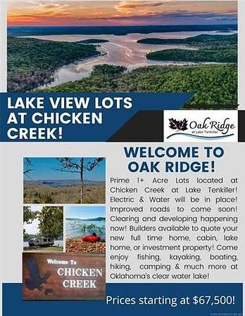 Discover your own slice of paradise at OakRidge at Chicken Creek, where each day greets you with breathtaking lake views and endless outdoor activities. This premium collection of vacant lots is primed and ready for you to build the home of your dreams, offering a rare blend of tranquility and adventure right at your doorstep. Spanning over 1+ acres each, these lots provide ample space for privacy and creativity in crafting your ideal living space. With water and electric readily available, along with high-speed internet, you can enjoy all the comforts of modern living while being surrounded by nature's unspoiled beauty. One of the most attractive features of OakRidge at Chicken Creek is its flexibility; whether you've been dreaming of constructing a traditional home, a vacation getaway, or a unique barndominium, this community supports your vision with minimal covenants and restrictions. Plus, for those who see opportunity in the booming vacation rental market, these lots are an excellent investment. The location couldn't be more ideal for outdoor enthusiasts and families alike. Just steps away, the Chicken Creek boat ramp offers easy access to Tenkiller Lake's vibrant waters, perfect for boating, fishing, kayaking, and simply soaking up the sun. The surrounding valleys provide picturesque hiking trails, inviting you to explore the natural beauty of the area. Convenience is also key, with both Snake Creek Marina and Cookson Bend Marina nearby, enhancing your lakeside living experience. And when you're in need of urban amenities, the charming city of Tahlequah is a short 30-minute drive away, home to hospitals, shopping, dining, and entertainment options to suit every taste. Come and experience the serenity and excitement that OakRidge at Chicken Creek has to offer. Your lakeside dream home awaits in a community that welcomes your aspirations.
