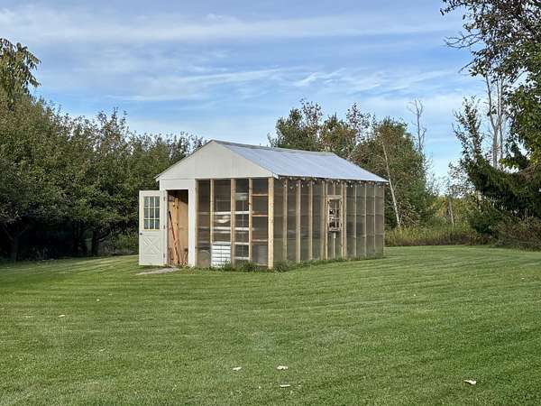 A homesteader's dream! Discover the perfect blend of country charm and self sufficient living with this beautiful 3 bedroom, 2-bath farmhouse ranch nestled on 11 peaceful rural acres. Bursting with natural light and rustic character, this home features wood floors, a formal dining room, and timeless farmhouse details that make every space warm and inviting, Enjoy peace of mind of a new metal roof, and take advantage of the property;s three versatile outbuildings, perfect for storage, workshop, or livestock. A greenhouse and established perennial gardens provide endless opportunity for the avid gardener or hobby farmer. The land is dotted with butternut, apple and pear trees, offering a bounty of fresh harvests right from your own backyard. This is a true homesteader's haven.