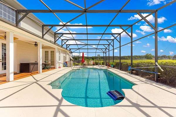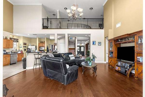 This Horse farm is over 16 acres and has been meticulously taken care of by these original owners it's whole life and it shows. Currently a home to Horses, Cows and Chickens. All pastures, stable, and chicken coop have water so that you never have to carry water to your animals again. The house , barn, and the well are wired with a generator plug just in case you ever loose power. The barn has six stalls one is currently a tack room and one is a feed room. The complete property is fenced in with a gated entrance that has solar and regular power. In 2025 the driveway has been repaved, a new water softener was added to the well, The fence was painted, rock landscaping was added around the grounds for easier mowing , and the pool deck was painted. The open floor plan is great for large family or friend gatherings. After a long day of horse back riding the large pool is great relaxation to get you ready to ride the next day. The home is set up for one floor living with the master bedroom, second bedroom, two full bathrooms, Grand Kitchen and living combo, with laundry on the first floor the second floor can be for your guests. The formal dining room is very large to accommodate all your guests and a den/sitting room next to the dining room is a great place to socialize with great friends or relatives. The home is very open ,light, and bright and was built with the idea no matter where you are in the house you are always part of the conversation. An extra storage building has been built on the property that can be easily converted to fit extra needs. This property is very large and can accommodate a lot of different family needs. Homes in this horse community are not on the market long. Call today for a private showing before it is gone.