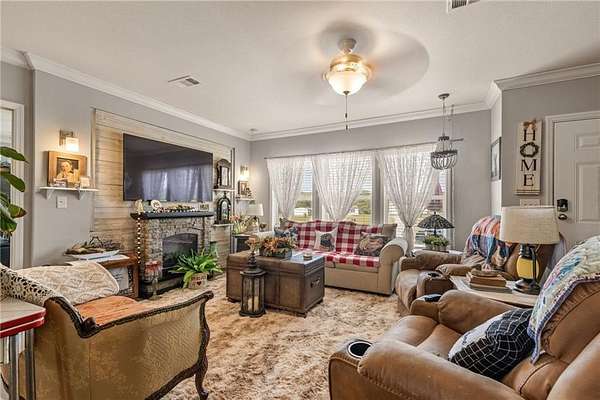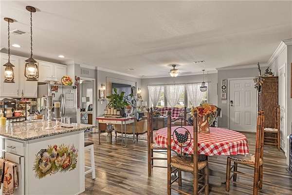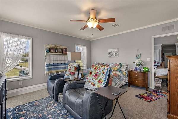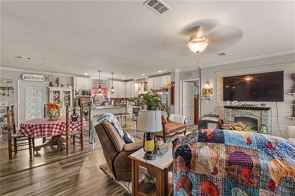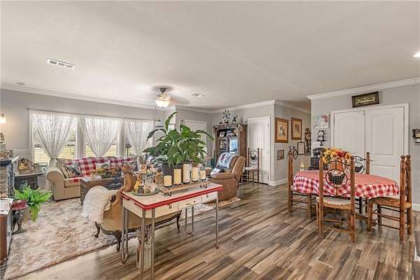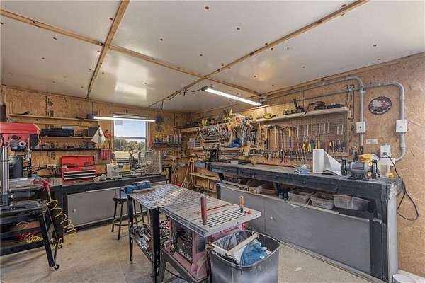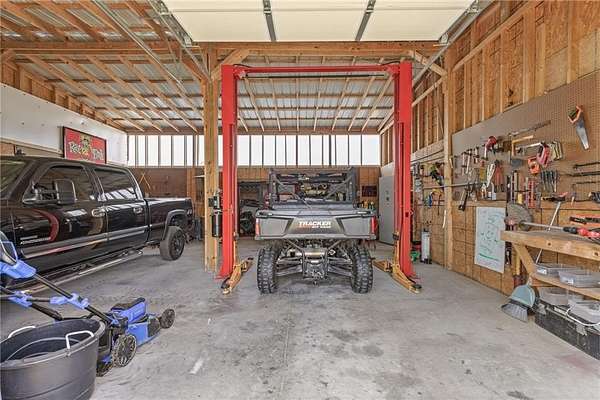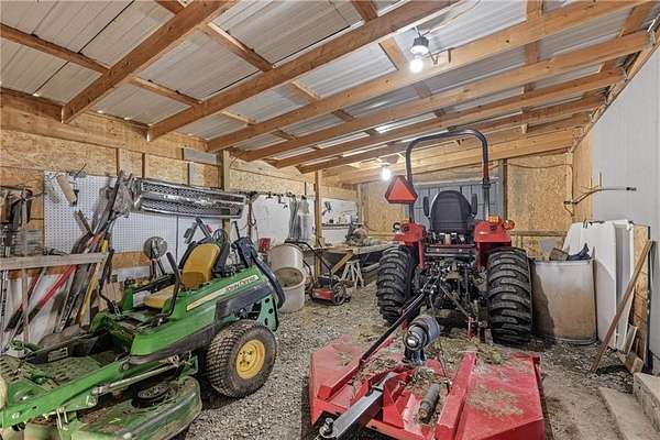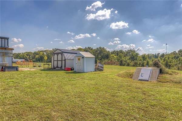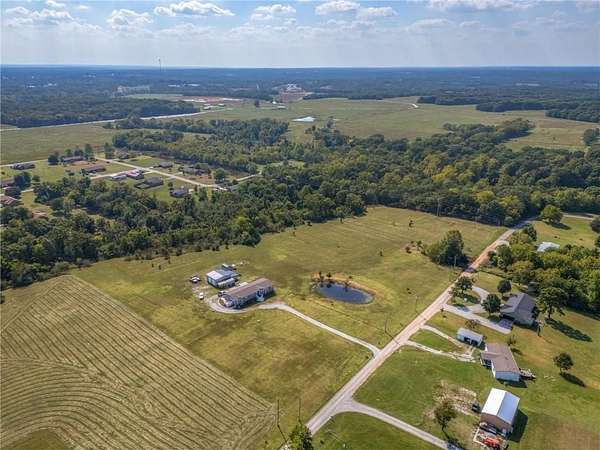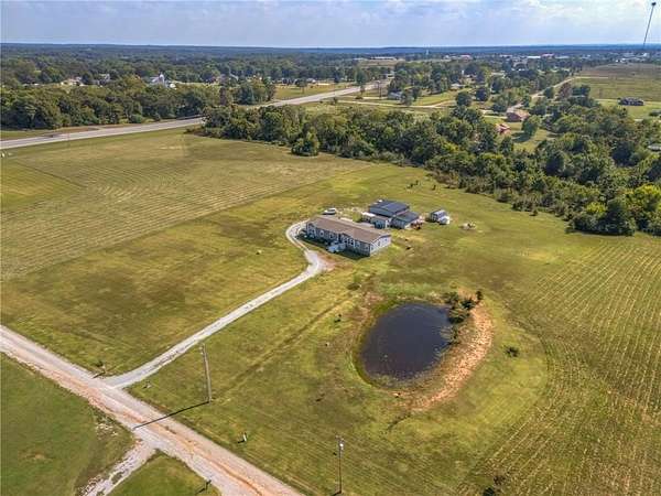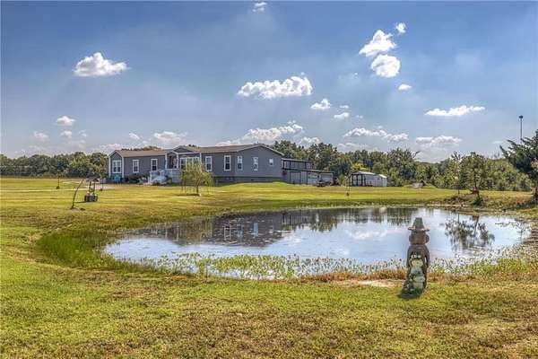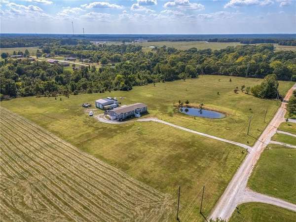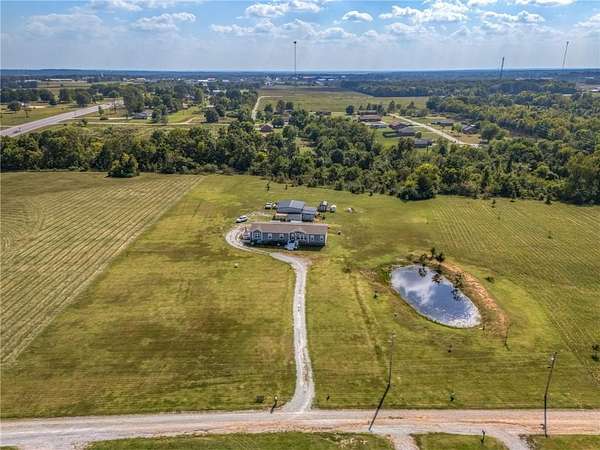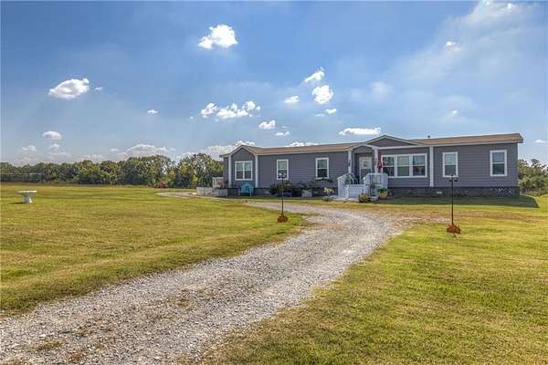 Almost new home on permanent foundation set on 11 open acres with a pond! This well-maintained home offers an open kitchen, living and dining room, along with walk-in closets and convenient office space in the hallway. One bedroom is currently used as a family room, giving you flexibility to fit your needs. There's also a large pantry and huge laundry room. Outside, you'll find a fantastic metal shop equipped with a lift, two overhead doors, and plenty of workspace. A lean-to and an attached greenhouse add even more flexibility. With wide-open land , a pond for relaxation, and versatile outbuildings, this property is ready for both work and play! City water is available across the road, but seller has good well. Natural gas is a short distance away. On the back of the shop, there's a header for adding an addition. Seller will sell almost new Mahindra tractor with bucket, brush hog, forks, box blade and backhoe. Conveniently located near Mid America and only a short drive to Grand Lake!