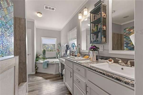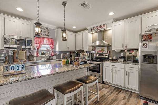 - Blinds, Built-Ins, Cathedral Ceiling, Ceiling Fans, Eat-in-Kitchen, Granite Counters, Ice Maker Connection, Pantry, Smoke Detector, Split Floor Plan, Walk-In Closets