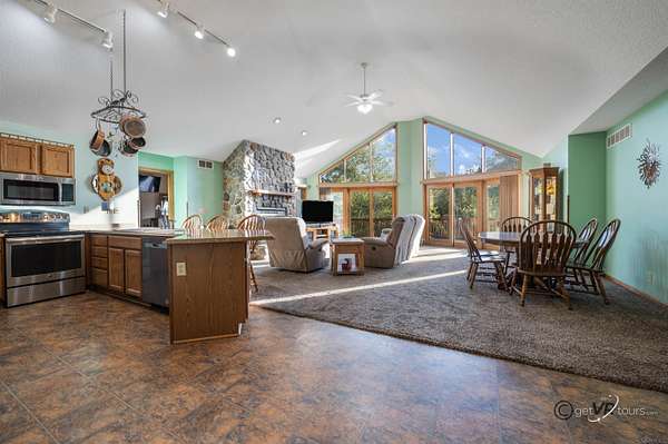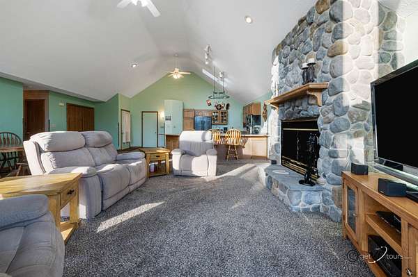 This Beautiful Cedar Ranch Home sits on 11 acres of serene private land. Great Room with Vaulted Ceilings in the Kitchen, Dining Room and Living Room with a wood Burning Stone Fireplace that leads out to the Patio doors looking out over the deck to view the property. Kitchen countertop has a custom edge laminate. Primary Bedroom and Bathroom has Vaulted ceiling with a walk in closet also has Patio doors to lead to the deck. 2 other Bedrooms on the main floor with a main floor bathroom. Several Skylights thru-out the main floor. Laundry on the main floor. Lower Level has a beautiful Stone fireplace in a 25.5 X 24.7 family room that has walk out patio doors. Bedroom downstairs with a full bathroom. There's a second kitchen with a breakfast bar for your entertainment. Enjoy the outdoors with a firepit and seating. A new 24' X 36" Pole Building with 3 - 9' floor overhead doors with a 3' side door. Concrete floor. So much to see with this property.