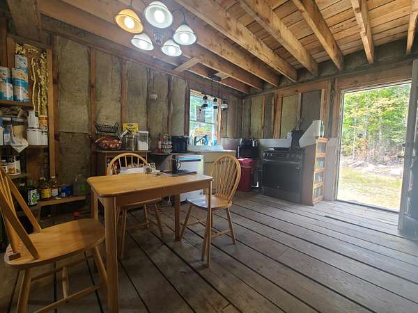 Unique opportunity to own 117 acres with 1800ft lake frontage on Round Lake/Pond with a true Off Grid home! Plus, another 1000ft of waterfrontage on Mac Brook. This property has no utility bill with a private well, septic and solar/battery system. It has all the comforts of home with running water for your dishwasher, washer and dryer, and on demand propane water heater. Stay warm all year round with the wood stove. This home was built in 2022 with the lumber being milled from the land. Real 2x6 lumber for walls, rafters with 2x12, milled out plank flooring and siding. The full concrete basement was done right with foam board insulation and the walkout basement option. The home is insulated with Rockwool for that added sound, mold, rodent, and fire protection. The roof is metal and there is a porch on the front of the home looking toward the lake. This home is not finished but still being worked on and will continue to increase in price and value as work is done. Come finish it to your desire...all the hard work is done its all the finishings that are needed. Finish what could be a 3-bedroom 2-bathroom home. The property has lots of active wildlife from bear, moose, deer and small game. Video is available. Seller finance could be an option. Call or text Stephanie Cowden