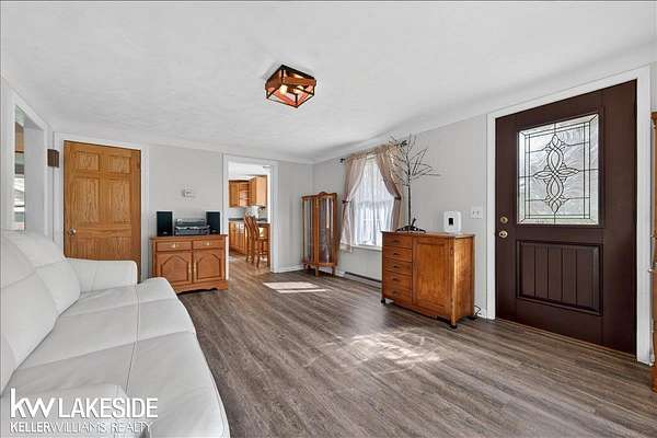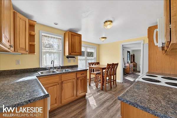 Enjoy Country Living within the City of Lapeer. Enjoy this Cozy 2 story Bungalow with 3 bedrooms 1.5 bath nestled on 2.12 wooded acres with trails and 2 out buildings One is a Workshop/ Garage with new vinyl siding, cement floor to also include an additional pole barn as well. New front and side Entry fiberglass storm doors to the house. Basement with plenty storage has an extra room that could be an office or craft room. Newer updates to include: updated new cabinets in this spacious eat in kitchen,newer luxury vinyl plank flooring through out. Updated Electrical & Plumbing. Make your appointment now on this rare find and get keys at closing.