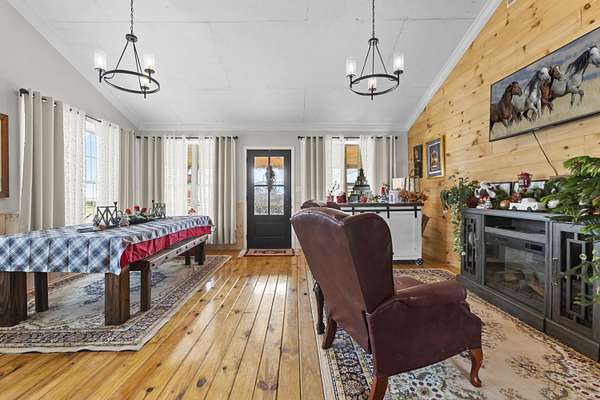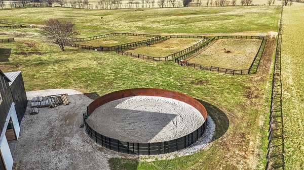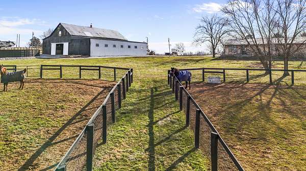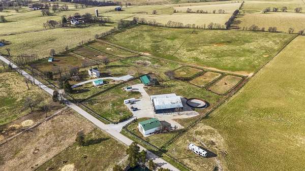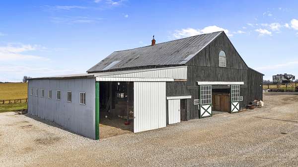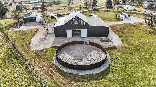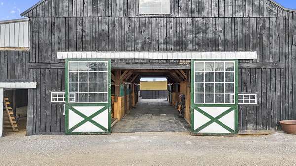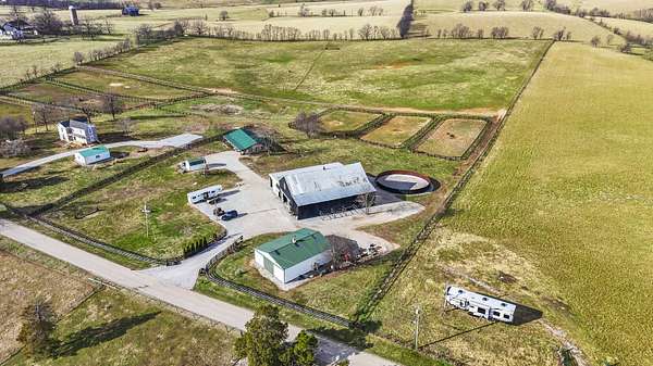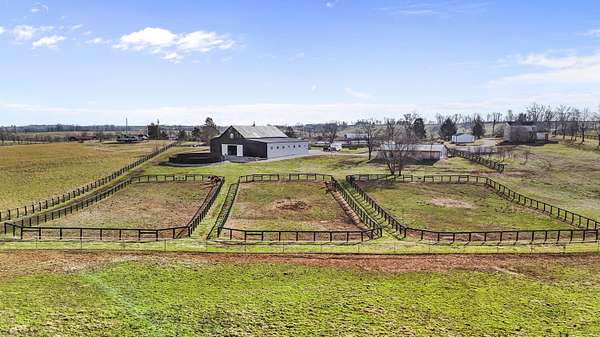 This charming 3-bedroom, 2-bath home with approximately 1,700 sq ft offers the perfect blend of comfort and functionality, paired with exceptional equestrian and workshop facilities. Ideal for horse enthusiasts, hobbyists, or anyone dreaming of a private homestead. The well-equipped 15 acre farm features a seven-bent 80x56 tobacco barn with eight stalls, a grooming stall, and a tack room with concrete flooring. An attached 80x33 storage shed offers convenient walk-through access and is perfect for hay or equipment storage. Additional storage includes a 12x20 shed with electricity. Outdoor amenities are thoughtfully designed with three large grass paddocks connected by 16-foot alleyways, plus a sprawling pasture that can easily be divided into additional paddocks. A 60-foot round pen with excellent drainage and solid 6-foot walls provides a safe and functional training area and includes a rear gate with direct access to the barn. This property also boasts a 40x50 workshop with 220-amp service, ideal for welding, heavy equipment, or camper hookups. The ranch-style home offers a vaulted-ceiling great room, newly remodeled bathrooms and laundry room, and a welcoming front porch-perfect for enjoying peaceful country views. The entire property is fully fenced and gated for added privacy and security! Additional 15 acres available next door from seller for $499,000.