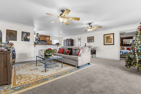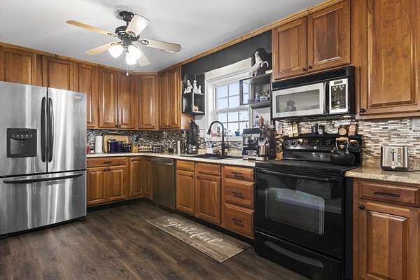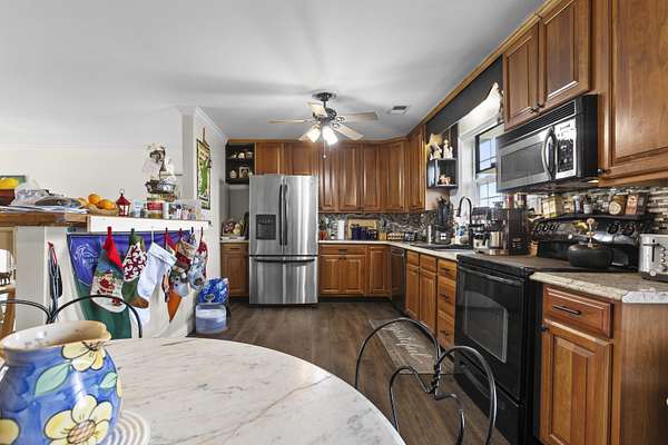 - Breakfast Bar, Ceiling Fan(s), Eat-In Kitchen, Primary Downstairs