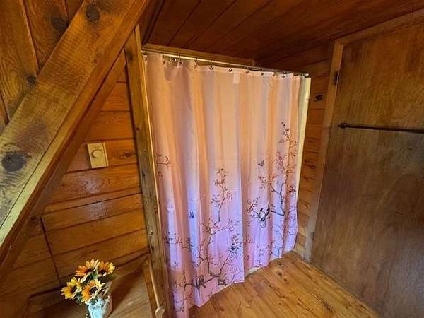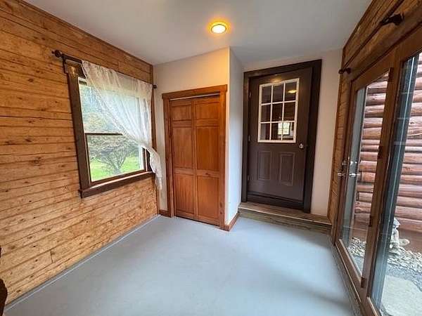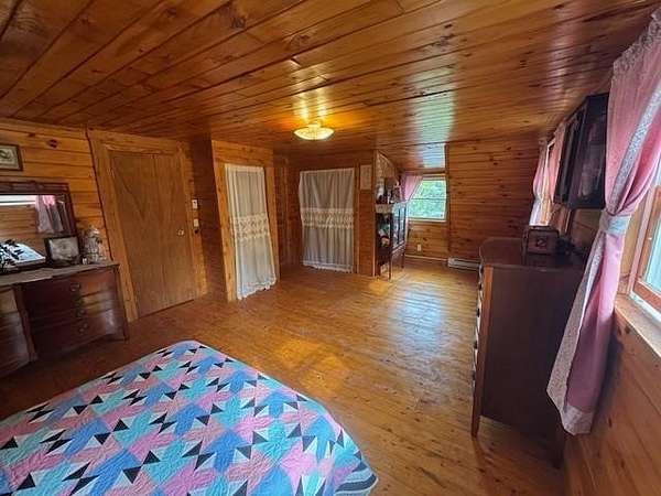 This is a very well maintained gambrel style log home with a matching 2 car garage addition with open second floor and breezeway between. 28 acres of rolling mixed woods, several open acres along the ridge where the home is, a beautiful pond, and a large open sided pole barn to vehicle and equipment storage. Craftsbury Outdoor Center trail is on the property and also across the road. The home is a lovely log home with exposed ceiling beams on the first floor. Pine floors with a very large living room w/ brick hearth and wood stove, 3/4 bath, attractive kitchen with new counters. dining room, and a full front porch. 2nd floor has a full bath at the top of the stairs with master bedroom and large closets to the left and a second large bedroom to the right with large closets. Thick pine floors grace this level. There is a full walkout basement w/ painted/sealed concrete floor and walls, oil/wood combination hot air furnace, and laundry. Could offer many possibilities for workout space, office, workshop. 2 story garage has concrete floor, and stairs to the open second floor. Endless possibilities there. Next is the very large 3 bay open sided pole barn currently housing equipment. The land is mostly wooded with a mix or hard and softwood. The home offers complete privacy, easterly views, Craftsbury Outdoor Center xc ski trails, Great Hosmer across the road with access just down the road. A heavenly spot.