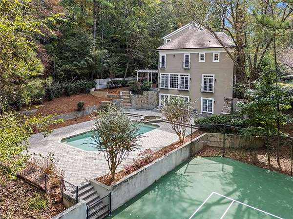 Bill Harrison designed European beauty in Sandy Springs. Welcome home to your very own resort complete with swimming pool and tennis/pickle ball court. Gated entry welcomes you home to this hardcoat stucco home on a quiet, peaceful street bordering Buckhead without City of Atlanta taxes. Convenient to all the private schools and minutes to shopping, restaurants and the Chattahoochee River. Soaring ceilings throughout, minimum 10 feet on main level. Kitchen and master bath were both completely renovated less than 5 years ago with no detail missed. Sub-zero refrigerator, 48" Wolf dual fuel range, white oak island and gleaming hardwoods throughout majority of home and beautiful Saltillo tile in the terrace level living areas. Full house generator, dry sauna, gym and fenced backyard. No lack of storage. One of the bedrooms was converted to sitting room adjacent to master suite, perfect for a nursery or easily convert back to bedroom. This one is not to be missed!