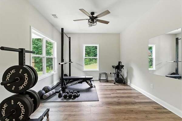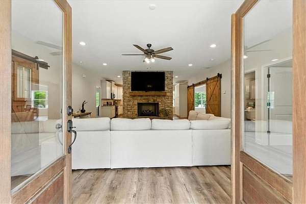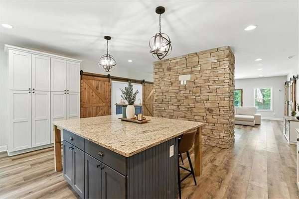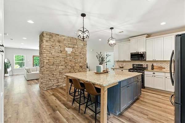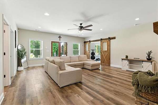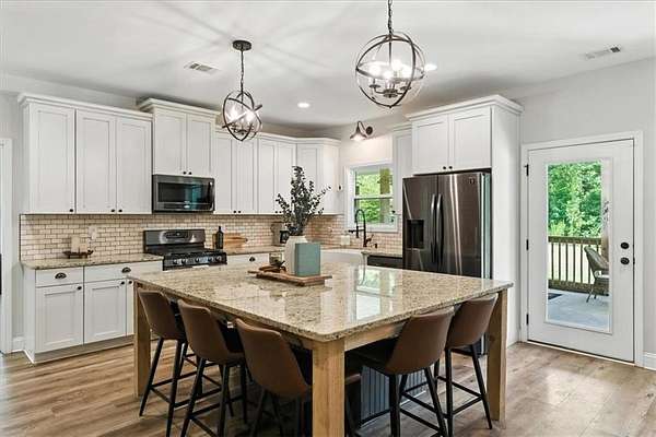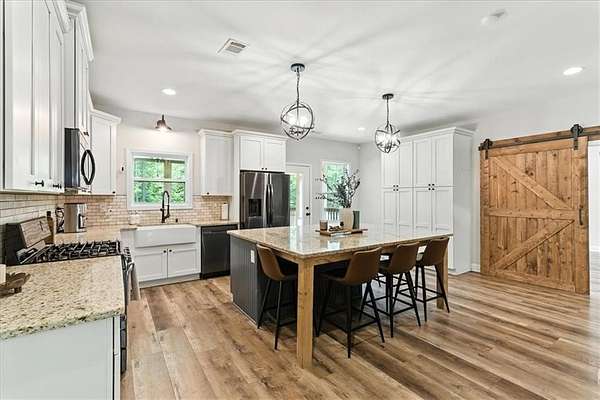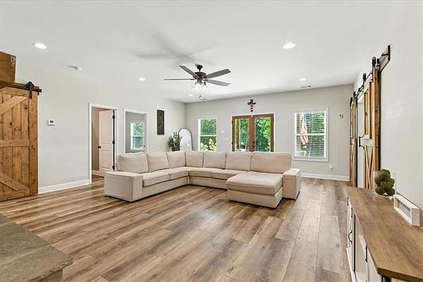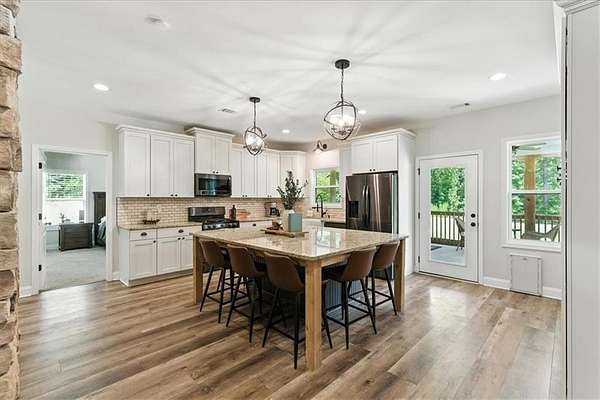 Embrace a slower pace of living at 1235 Williams Rd, a hidden gem in North Paulding offering peaceful seclusion, modern comfort, and room to roam on 10.5 private acres with a gated entrance, dedicated RV parking space with an electrical hookup, making packing, unloading, or accommodating out-of-town guests easy and convenient. Outdoor lovers will appreciate private access to Pumpkinvine Creek, perfect for fishing or playing in the water right on your own land. Built in 2020, this stepless ranch home features 3 bedrooms, 2 full bathrooms, and a large flex room with a wet bar perfect for a home office, game room, or oversized dining space. The bright, open-concept layout centers around a stunning kitchen with a huge island, granite countertops, stainless steel appliances, and a stacked stone fireplace. Enjoy the practicality of a large laundry room with its own sink, perfect for pre-soaking or quick clean-ups. The primary suite offers plenty of room for large furniture and includes a luxurious en suite bathroom with an oversized tile shower, dual-sink vanity, and a walk-in closet. Enjoy the efficiency of a tankless water heater and the peace of mind that comes with filtered well water. No need to worry about internet access--fiber and high-speed internet service is already available! Step out to the screened back porch and enjoy views of your fenced backyard with frequent visits from deer, turkey, and other wildlife. The oversized 10' garage doors provide ample space for trucks, recreational vehicles, or storage. Whether you're looking for complete privacy, building a mini farm, or a property ready for entertaining--this one checks all the boxes.