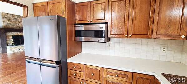 The light filled vaulted great rm is anchored by stunning floor-to-ceiling stone fireplace. Large windows bring the serenity of the outdoors in. The kitchen features solid oak cabinetry and new SS refrigerator, newer smooth surface stove & air-fry oven, ideal for anyone who loves a stylish space. Recent updates include New Roof (2023), newer carpet, water Heater and softener.