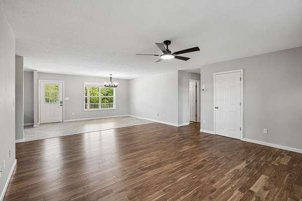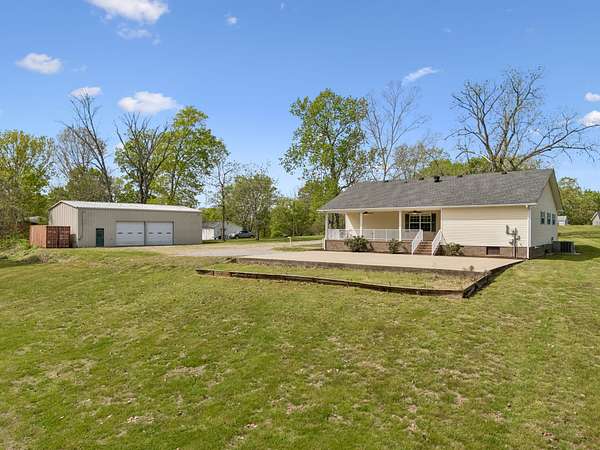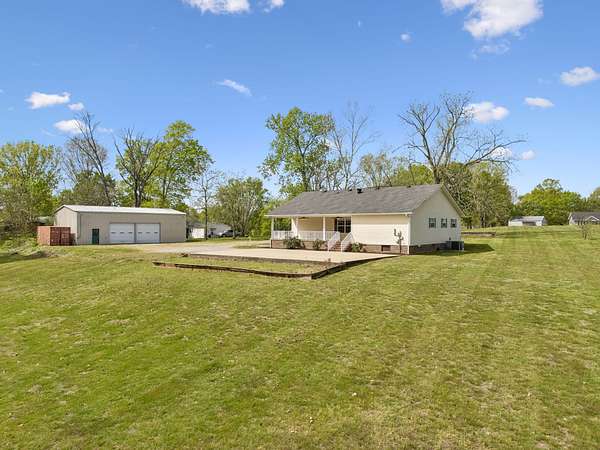 One-level ranch home set on over 4 acres offering a peaceful country feel with the convenience downtown close by. The home sits well off the road and is peppered by mature trees, including a beautiful wooded backdrop behind the property. Inside, the open floor plan connects the living, dining, and kitchen areas, with new flooring throughout the main spaces and primary bedroom. The kitchen includes a large pantry and all new appliances—refrigerator, stove, microwave, washer, and dryer—making it truly move-in ready. The home offers 2 full baths, along with a spacious laundry/mud room that includes its own half bath and built-in ironing board. A tankless water heater has been installed in the crawl space. Step outside to a large, covered patio along with an extended concrete patio and parking area. A standout feature is the 52’ x 35’ shop, complete with its own half bath, LED lighting, 220v power, car lift, and two 12’ x 12’ doors with electric openers—perfect for a workshop, business use, or serious hobby space. If you’re looking for space, functionality, and a quiet setting without being too far out, come take a look.