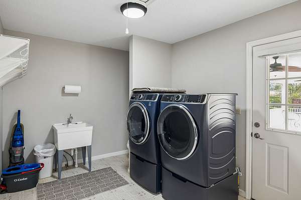 - Electric Dryer Hookup, Gas Dryer Hookup, Washer Hookup
