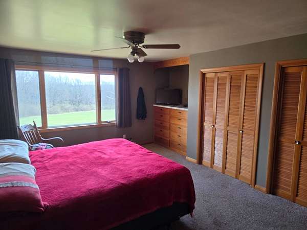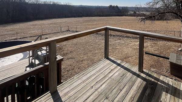 Enjoy the perfect blend of comfort and country living with this 3-bedroom, 3-bath home, with attached two car garage located just minutes from Macomb in the Macomb School District. Situated on 24.75 ± acres, this property offers a beautiful mix of pasture, timber, and a small pond-ideal for those seeking space, privacy, and a connection to the outdoors. Inside, the home features a spacious living room with a vaulted beam ceiling, cozy fireplace, and access to a walk-out deck overlooking the property. The large open kitchen flows seamlessly into the dining area, creating a great space for everyday living and entertaining. A main-level home office with built-ins and a full bathroom provides flexibility for work or guests, while the first-floor master suite includes a private en suite bath. You'll also appreciate the abundance of closets and built-ins throughout the home. The finished basement expands your living space with a second fireplace, walk-out access to a patio, two additional bedrooms, and a full bathroom-perfect for guests or family. Step outside to enjoy the elevated deck with an above-ground pool, a large chain-link fenced area, and expansive pastureland to the north and south. The timber acreage features established trails and a small pond, offering excellent opportunities for recreation and wildlife viewing right from your backyard. The expansive property and pastures make it ideal for cattle, horses, or other livestock. Whether you're envisioning a hobby farm or enjoying private hunting, this land delivers endless possibilities. Being sold as-is.