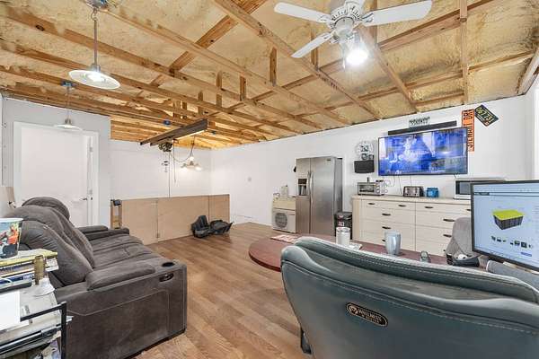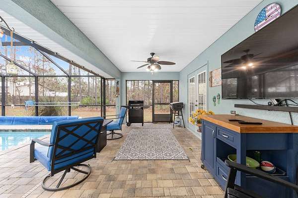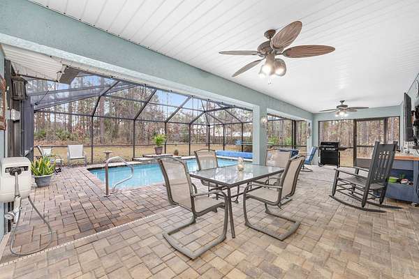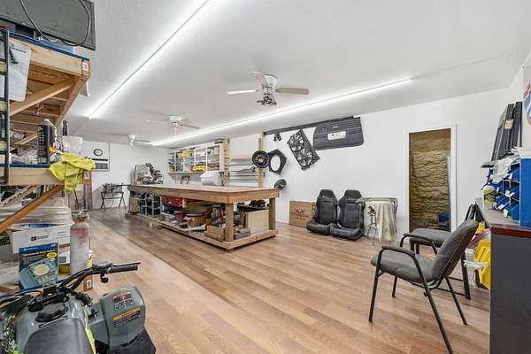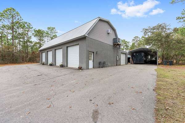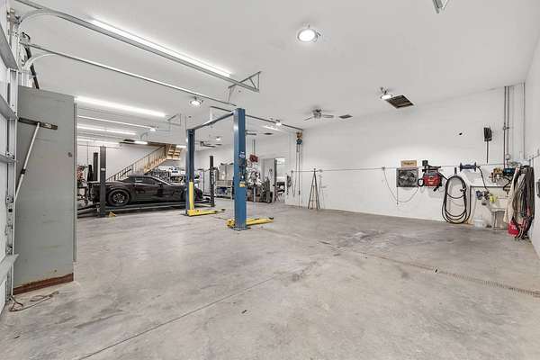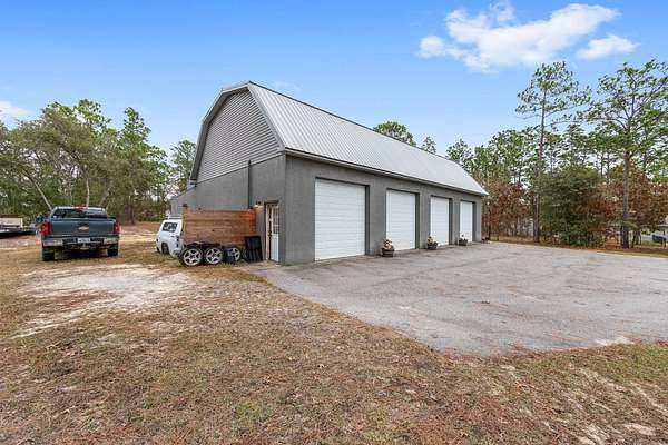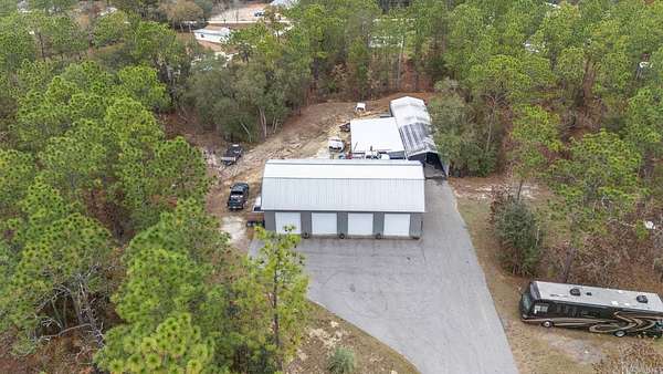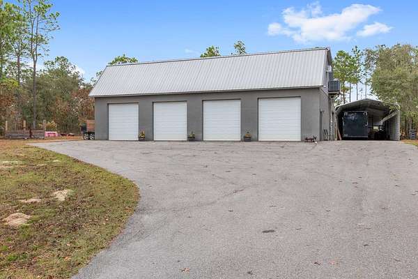 This is a one-of-a-kind opportunity to own a property that seamlessly blends luxurious living with unparalleled space for your automotive passion. Set on a sprawling 2.28-acre double lot, this 4 Bedroom 3 Bath Pool home isn't just a home-it's a lifestyle. With expansive grounds, a stunning pool area, extensive garage and body shop amenities, it offers a rare blend of privacy, space, and functionality. For the car enthusiast or hobbyist, this is more than just a place to live-Its a place to thrive. This property is a car lovers paradise. Discreetly tucked behind what appears to be a traditional 4 car garage is a full-blown automotive haven and a private turn key body shop business. The front shop features four bays (30'x60') with a nearly finished loft (16'x60') complete with a half bath and AC-ideal for a private office or creative workspace. A back room (20'x60') includes a dedicated body shop area with a 26' paint booth and mixing room, providing space under roof and AC for up to six cars. But that's not all-outside, there's even more room to indulge your passion. A large storage barn can accommodate eight additional cars, and there's an 8'x48' storage shed plus a 16'x48' lean-to for even more vehicle storage. The property also includes an RV port with electric, power, and water hookups, making it perfect for RV enthusiasts. The home itself offers luxurious comfort, formal dining, den/office and open kitchen with real wood cabinets, upgraded stainless steel appliances, and plenty of storage, the kitchen is both functional and beautiful. The primary bedroom boast tray ceilings, double sinks, a garden tub, and a shower. Two guest rooms share a Jack-and-Jill bath, while the fourth bedroom has an adjacent bath-ideal for guests or in-laws. The den/office and formal dining room flows into a spacious family room that opens up to the private pool oasis. Enjoy your gas-heated saltwater pool with beautiful stonework and a waterfall year round, all enclosed in a screened lanai overlooking a serene, wooded area. This is a one-of-a-kind opportunity to own a home that combines residential luxury with unparalleled space for car restoration and storage. A must-see for any enthusiast looking for the perfect blend of comfort and hobby space!
