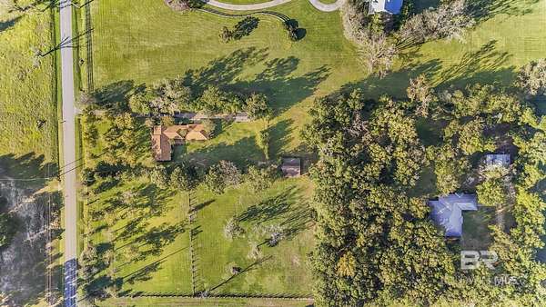 12352 Mary Ann Beach Rd, Fairhope is a Charming Ranch Retreat on 3.8 acres- about 1 mile from Mobile Bay! Includes PPIN 36741 and 625530. Discover peaceful country living just minutes from stunning sunsets and about 15 min to grocery shopping and schools. This 3 bedroom, 2 bath ranch-style home offers 2091 sq ft of living space surrounded by mature producing pecan, fig and pear trees, blueberry bushes and muscadine vines. Off the back of the home, there is a heat and cooled sunroom that overlooks a covered patio/breezeway, where you will find a built in bricked smoker. Connected to the breezeway is the oversized 2 car garage featuring the 3rd full bathroom, laundry hook up and utility sink. Step outside to enjoy almost 4 acres of beautiful land to use as a hobby farm, functioning farm or homestead.. ready for your animals! 30x34 Barn with hay loft, 3 lockable stalls, a feed room, 2 fenced pastures, chicken coop with nesting boxes and feed house. 16x20 Shop that has water and power as well as 50 AMP RV plug and 100 AMP service for a welding machine. Whether you are seeking a private homestead, small hobby farm or peaceful coastal get away, this property offers the perfect balance of comfort, functionality, and natural beauty-all close to Fairhope's charming downtown and minutes from Mobile Bay. Enjoy country living close to the coast- schedule your private tour today! Glenn Acres sign in Living Room and Fire Hose American Flag in Sunroom, not to convey. Buyer to verify all information during due diligence.