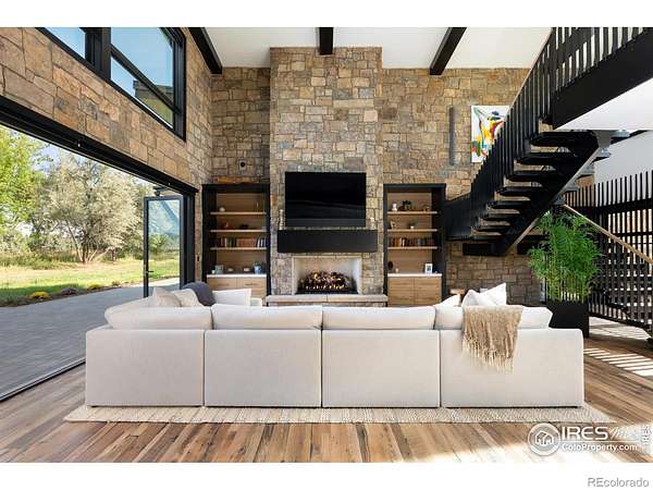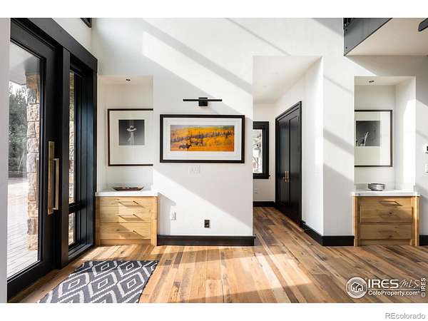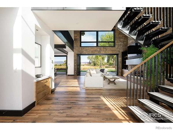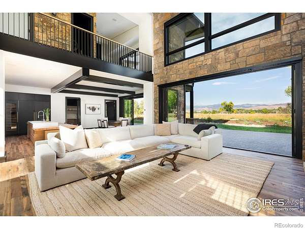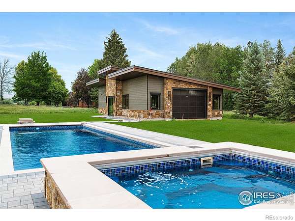Large price improvement on new construction luxury. Lakeside living near Boulder is virtually unheard of, making 12357 N 75th Street one of the most exceptional opportunities in the region. Set on 7 lush, irrigated acres with direct access to a private lake and sweeping views of Longs Peak and the entire Front Range, this Boulder County estate offers natural beauty, luxury, and privacy just 20 min. from downtown Boulder. At the heart of the property is a newly constructed 5,754 SF residence, thoughtfully designed for elevated indoor-outdoor living. Expansive accordion glass doors capture breathtaking views, bringing the land into every room. Every element has been curated to support a life comfort and refined style. The kitchen is a standout, equipped with Sub-Zero and Wolf appliances, a steam oven, a striking steel range hood, wine storage, and a fully appointed cook-in butler's pantry. A dramatic open-hearth fireplace anchors the great room, where rich textures, such as handcrafted cabinetry, reclaimed wood beams, and custom steel elements, create depth and sophistication. The home features four spacious bedrooms and six bathrooms, including a luxurious primary suite with a private loft, balcony, coffee bar, double-sided steel fireplace, spa bath with a soaking tub and steam shower, and a custom-designed walk-in closet. A dining room, private home office, and generous laundry room round out the home's well-appointed interior. Step outside to a true lifestyle haven. A heated pool and spa, lakeside firepit, and expansive patios offer multiple venues for entertaining or unwinding in total privacy. Direct lake access provides the rare ability to paddleboard, canoe, or enjoy peaceful moments beside the water. The estate also includes a newly constructed agricultural barn, an original carriage house, and a freestanding art studio. Just down the road, the charming enclave of Hygiene offers a taste of small-town life, boutique shops, and close-knit community feel. Home co