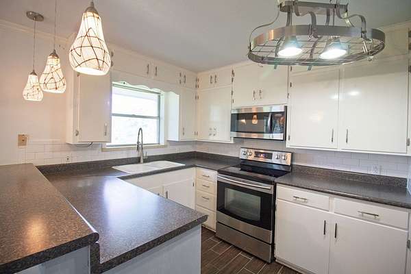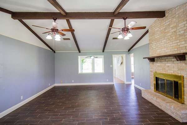 Welcome to 1236 FM 2824 in Beeville! This charming 3-bedroom, 2-bathroom country home sits on 7.94 acres of pure South Texas beauty. Surrounded by stunning centennial oak trees, this property is truly a breath of fresh air. Step inside and you'll be greeted by a spacious living room featuring vaulted ceilings, rich wood beams, and a cozy wood-burning fireplace that immediately makes you feel at home. The flooring throughout the home is ceramic tile-durable, stylish, and easy to clean, making everyday living a breeze. The recently updated bathrooms offer a clean, modern feel with elegant touches, while the open kitchen and dining area are perfect for entertaining-complete with serene views of the peaceful landscape. An additional sunroom/office floods with natural light and opens to the back patio-ideal for morning coffee or taking in breathtaking sunrises. The primary suite boasts an updated ensuite with a double vanity, soaking tub, and stylish finishes. The secondary bathroom also includes a double vanity and a pocket door for added privacy and functionality. This move-in-ready home offers the perfect blend of comfort, privacy, and country living just minutes from town. Don't miss your chance to own this slice of Texas paradise!