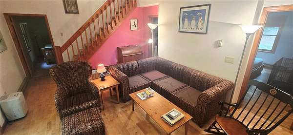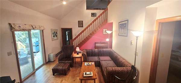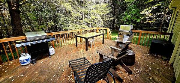 First time on the market! This well-maintained 3-bedroom, 3-bath home sits on 8 +/- mostly wooded acres with a private, tree-lined driveway-your peaceful retreat just minutes from Oneonta or the historic village of Stamford, NY. Originally built as a cabin in the 1980s, a modular addition with loft was added in 1993, creating a spacious 1.5-story, 1,800 +/- sq. ft. residence. The main level offers convenient one-floor living, an abundance of closet space with all bedrooms and baths easily accessible. The primary suite features a private bath with shower, while a second bedroom also has its own ensuite with tub/shower. There is a third full bathroom with tub located next to laundry room. Oak floors from the original cabin bring warmth and charm, complemented by thoughtful updates throughout. Off the kitchen, a mudroom provides closets and pantry space, while the dining area opens to a back deck (1995)-perfect for entertaining. A covered front porch completes the welcoming entry. Upstairs, the 600 +/- sq. ft. loft is an open, flexible living area with vaulted ceilings, ceiling fans, parquet and carpeted floors, and plenty of room for a home office, studio, exercise space, or additional guest quarters. Additional highlights include a two-stall garage (24x24, built 1996), laundry room off the dining area, freestanding stove in the living room, plus electric baseboard heating, ceiling fans, and even a half basketball court near driveway entrance for recreation. Set back on a town-maintained road and surrounded by woods, this property offers privacy, peace, and quiet with easy access to shopping, dining, and live music. A rare find with original owners-never before offered for sale. Call to schedule your personal tour of this property today.