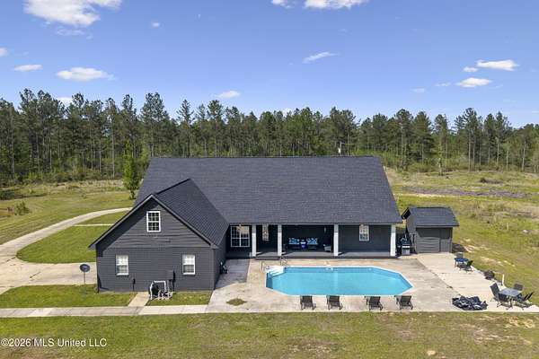This stunning 4-bedroom, 3.5 bath home offers the perfect blend of space, comfort, and country charm, all set up on 7.70 acres. Inside you will find an oversized living room centered around a cozy gas fireplace-ideal for gathering or quiet evenings at home. The spacious layout also includes a versatile bonus room, perfect for a home office, media room , gym , or play space. The oversized primary suite is a true retreat, featuring two walk -in closets and a spa like bathroom designed for relaxation, with plenty of room to unwind after a long day. The gourmet kitchen is a standout, equipped for both everyday living and entertaining with ample space. Step outside to enjoy your private oasis , complete with an inground pool, scenic pond, and plenty of open land. The property also includes a chicken coop, a 20x30 slab for a later project of a workshop. A brand new roof provides peace of mind, making this home as practical as it is beautiful. With its combination of modern comforts, expansive land, and thoughtful features this property offers a rare opportunity to enjoy both luxury and tranquility.