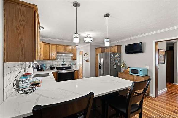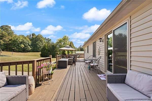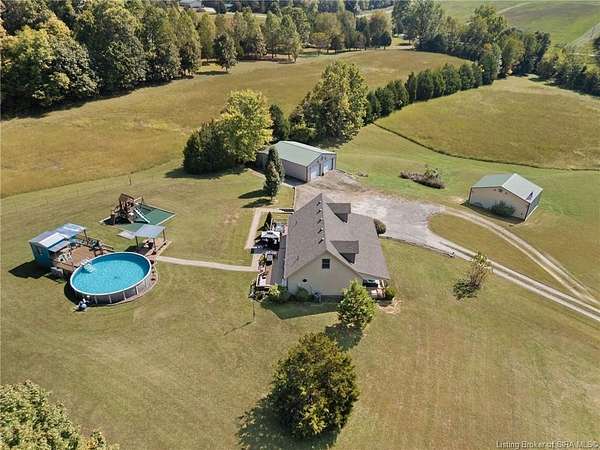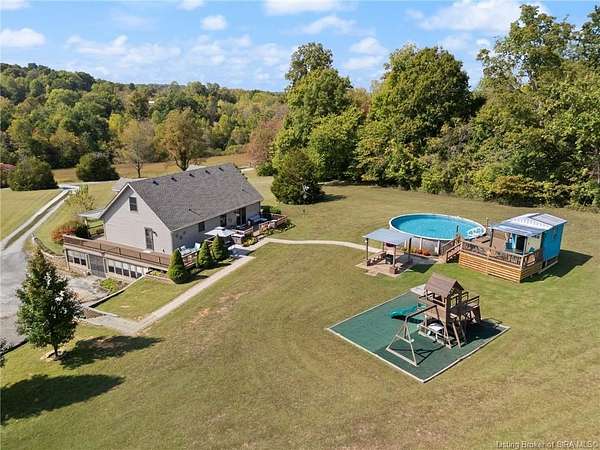 Welcome to 1236 Walts Road in Georgetown, Indiana a spacious home on 4.62 picturesque acres offering the best of peaceful country living with quick access to modern convenience. Located just minutes from I-64, this property provides an easy commute to New Albany, Louisville, and surrounding areas. The home features approximately 3,588 finished square feet with 4 bedrooms, 2 full bathrooms, and 1 half bath. The main level includes a bright living area, kitchen, dining space, and convenient first-floor laundry. The finished walkout basement adds additional living area with two non-conforming bedrooms, providing flexibility for guests, an office, or a hobby space.