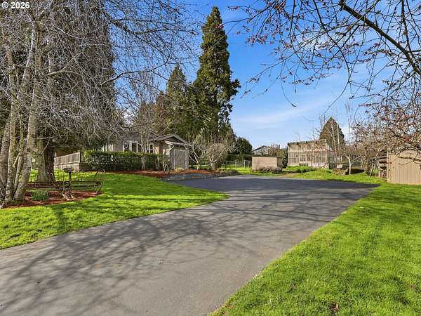 Welcome to your Sherwood sanctuary, a meticulously reimagined retreat with single-level living capability situated on a level 1.52 acre parcel with sweeping valley and livestock views. Originally built in 1900 and transformed by a complete renovation and expansion in 2009/2010, this 3-bedroom, 2.5-bath home perfectly blends historic charm with modern luxury. The heart of the home is a gourmet chef's kitchen featuring extensive butcher block countertops, two sinks, a 6-burner stove with a pot-filler, and high-end SS appliances. The open concept layout creates seamless sightlines to the living and dining areas, bathed in abundant natural light. Designed for seamless indoor-outdoor living, the grounds offer a collection of serene, picturesque spaces for year round enjoyment. The primary suite on the main includes a dedicated bath and two closets, upstairs you'll find 2 additional bedrooms, a full bath, and a flexible loft. Additional interior highlights include a versatile office/workroom with its own exterior door and sink, custom built ins, and essential systems such as a whole-home water filtration system, hot water recirculation, a newer furnace and heat pump, and a whole-home generator for any emergencies that may occur. The exterior grounds are equally impressive and well-cared for, featuring a fully fenced backyard with a sprinkler system and mature landscaping that blooms nearly year-round. The property includes four functional outbuildings: a 2-car garage with a 15x17 bonus room, an 800 sq ft two-bay barn with concrete floor, a large 12x16 greenhouse, and a charming 12x12 root cellar.Located just minutes from I-5, local shopping, and Graham's Oaks Nature Park, this home offers a rare combination of privacy and convenience. All of this within the award-winning Sherwood School District. Come take a look around this beautiful sanctuary today! Offer deadline is Monday, 3-23 at 6pm