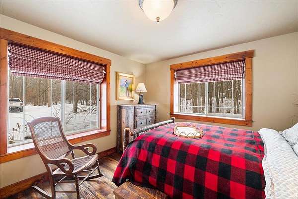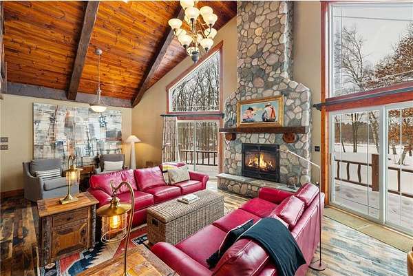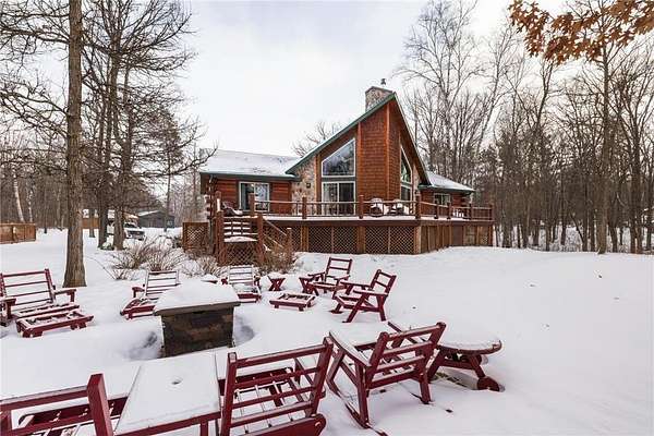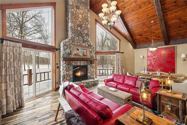 When you imagine your next Northern Minnesota adventure, this is it. Nestled on a tree-studded 5-acre lot, this gorgeous lakefront home offers the perfect blend of comfort and craftsmanship, featuring log beams and natural beauty.