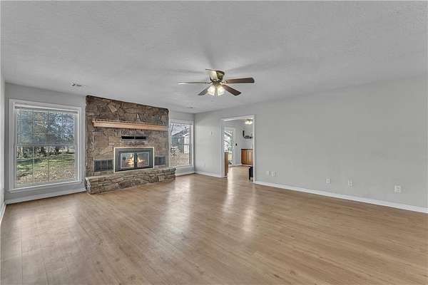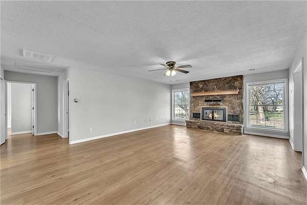 Welcome to a beautiful 4-bed, 3-bath country home on 2.35+- acres. The expansive covered front porch is the star of the show, the perfect place to relax in rocking chairs, enjoy morning coffee, watch breathtaking sunsets, or visit with friends while taking in the quiet rural views. The spacious living room features a striking wood-burning fireplace. The open eat-in kitchen boasts abundant cabinetry, generous counter space, bar-height peninsula, separate cooktop, and wall oven. A separate formal dining room off the entry is ideal for gatherings.