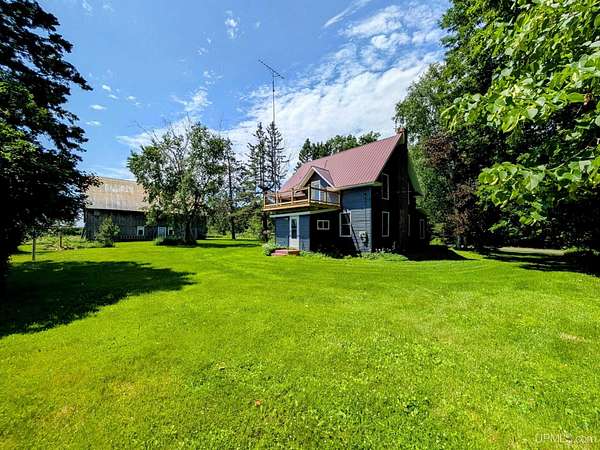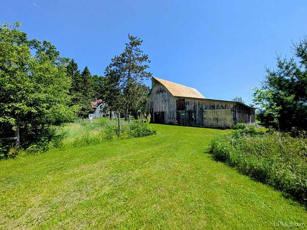 Quintessential farmhouse and classic Saltbox style barn sitting on over 11 acres overlooking rolling old farm fields. This picturesque setting begins when you pull in the drive lined with towering Spruce and Maple. Enter the renovated home with its metal rood and fresh maintenance-free siding and new/newer windows and feel the warmth exude from hardwood flooring leading you through the main floor. The main floor flows from the kitchen and dining room into a large living room area with plenty of room for family and friends to gather. The finished 3-season front porch could easily be heated to extend the amount of first floor living space. Upstairs you find three bedrooms, a sitting area, a second floor balcony that's perfect for morning coffee and watching the sun rise as well as a full bath with the exposed hand-hewn logs of the house. The poured, dry basement offers laundry space, a workshop area and root cellar with room to spare for whatever your needs. High efficiency propane fired appliances keep you toasty through beautiful winter months. Outside you'll find an fenced garden space with fruit trees just waiting for nurturing hands to work the soil and bring forth the next season's harvest. The classic Saltbox Barn with its haymow has room for everyone's imagination....whether you're wanting a hobby farm, workshop or just storage, there's room for it all. All this located minutes from Iron River as well as just a few mile from many area lakes, rivers and the Ski Brule ski resort. Picture yourself sitting around the fire-ring, watching the stars and making this canvas of Americana yours today.