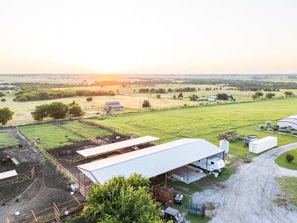 PRICE REDUCED!! Welcome to Longhorn Meadows Ranch. Located just an hour from the DFW metroplex, this prime 300-acre property, with direct access off Highway 51, boasts outstanding road frontage and a private pipe entrance that leads to the ranch headquarters. The main building includes 2,000 sq. ft. of living space, along with an attached 60x80 airplane hangar, all set atop one of Denton County's highest points offering stunning views. Additional improvements include a 1999 Palm Harbor Double Wide mobile home featuring 3 bedrooms, 2 bathrooms, and an attached carport. The property is well-equipped for cattle operations, with a 100x40 commodity barn, pipe holding pens, a squeeze chute, and a loading dock. The property includes 7 well maintained traps, two large stock tanks and 4 water wells. Excellent opportunity for commercial feed lot with elevation and Trinity well that produces 150 GPM. A 2,875-foot grass airstrip is conveniently located adjacent to the headquarters. While the ranch has a rich history of running a purebred cattle operation, it presents immense potential for commercial ventures or future development. Location is key! This property is in the heart of North Texas growth corridor and only minutes to Decatur, Sanger and Denton. With excellent road frontage, panoramic views, rich pastures, and unmatched versatility, this property is a standout investment opportunity in the heart of North Texas. All showings are by appointment only. If you would like more information or would like to schedule a private viewing please contact Phil Dodd at (817) 915-2502