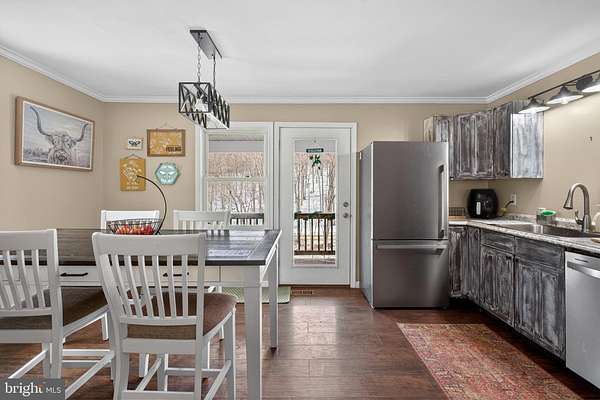 Welcome to peaceful country living on 5.1 beautiful acres, offering the perfect balance of privacy and convenience, just 25 minutes from Winchester. This spacious raised ranch features 4 bedrooms and 2 full baths, along with a standout detached 2-car garage wired and ready for your woodworking tools, or for the auto enthusiast, air compressors, etc. The detached garage also offers large unfinished loft space above. Inside the home, you'll find a functional layout ideal for everyday living. The main level includes 2 bedrooms and a full bath, while the lower level offers 2 additional bedrooms, a full bath, laundry area, and private outside entrance, perfect for guests or added flexibility. Step outside and take in the open space and quiet surroundings from the full-length front porch, or enjoy gatherings on the back deck that wraps around the side of the home. With over 5 acres, there's endless opportunity to garden, explore, or simply enjoy the peaceful setting. If you're looking for space, privacy and a convenient location just minutes from Winchester, this property is a must-see.