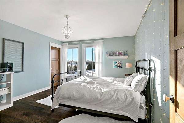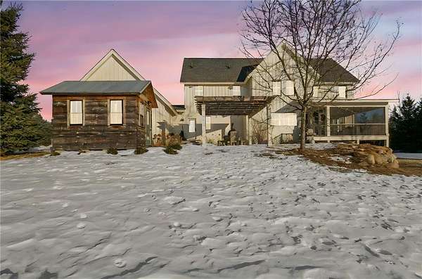 Outdoor living truly shines with a screened porch overlooking lush grounds with heritage apple trees, established irrigation, and pasture water--everything already in place for hobby farming, gardening, or animal enjoyment. The professionally installed prairie-inspired landscaping, expansive gardens, stone patio, and sauna with Wi-Fi capability create a private retreat designed for both relaxation and productivity.