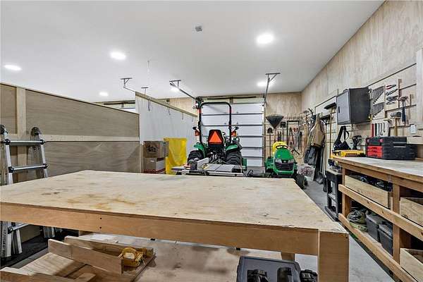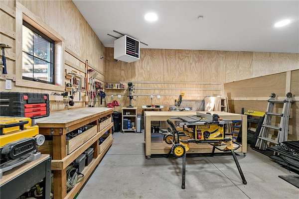 The standout feature is the impressive two-story 47' x 35' heated garage/barn, complete with a large exercise area, fully equipped workshop, and an upper-level office/loft--ideal for equestrian care, creative pursuits, home-based businesses, or serious hobbies.