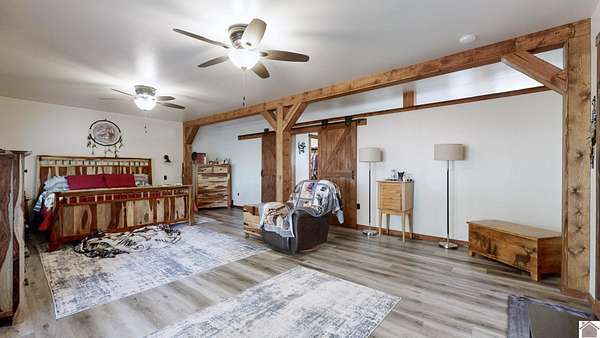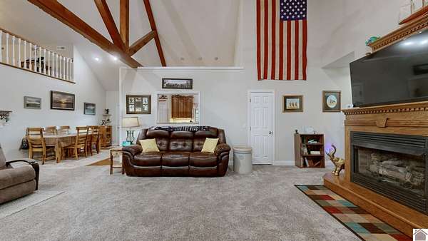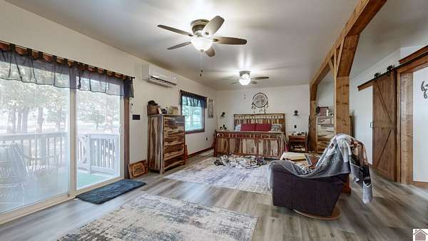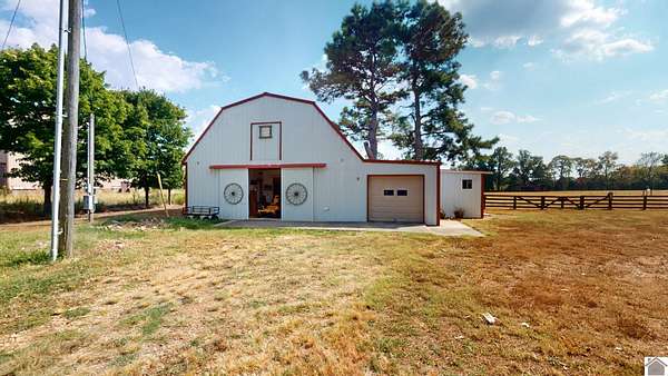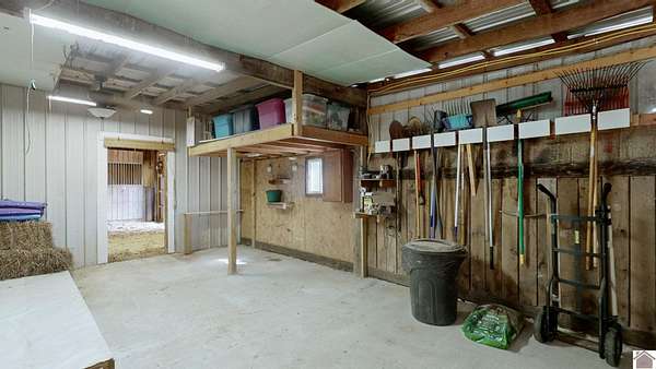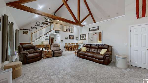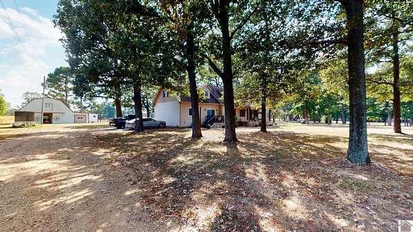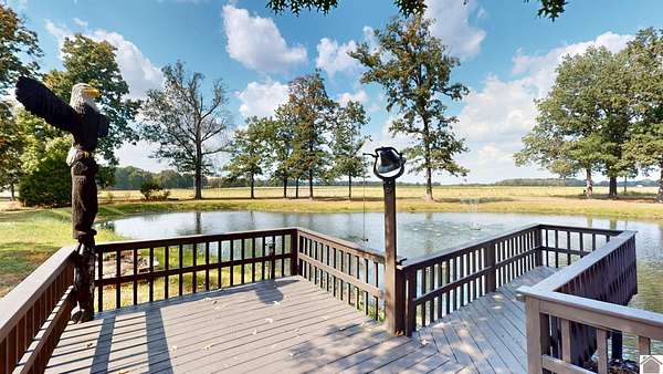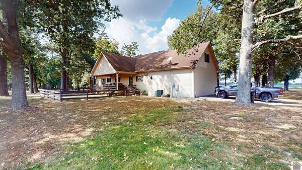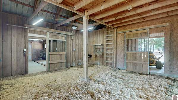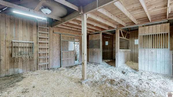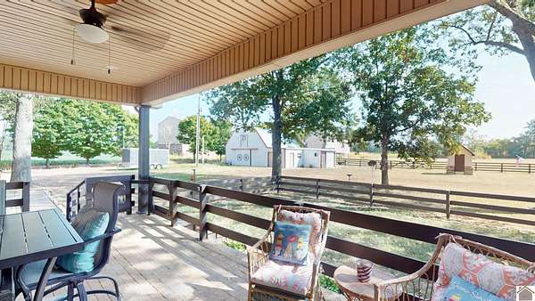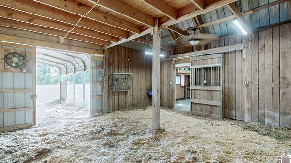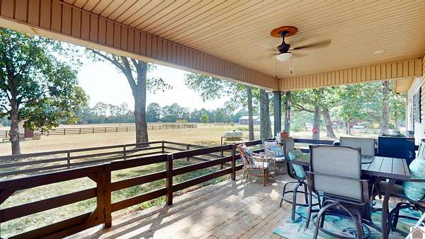 Spacious 2-story home with 4 bedrooms, 2 full baths, and 2 half baths on 5.88 acres. The main level features 3 bedrooms, including two en-suites. The primary suite offers access to a private porch, a walk-in closet, and a walk-in shower. A second en-suite also includes a walk-in shower. Upstairs, you'll find the 4th bedroom with a private half bath, walk-in closet, and an additional sitting or office area, perfect for working from home or quiet relaxation. Hardwood floors lie under the carpet in the living room and hallway. Modern comforts include a whole-home generator and tankless hot water heater. Outdoor highlights include covered front and back porches, two ponds--one with a fountain and dock--and a versatile horse barn with two current stalls (previously four), tack room, workshop space, storage, and hay loft. With abundant acreage, outbuildings, and water features, this property combines comfort, functionality, and peaceful country living.