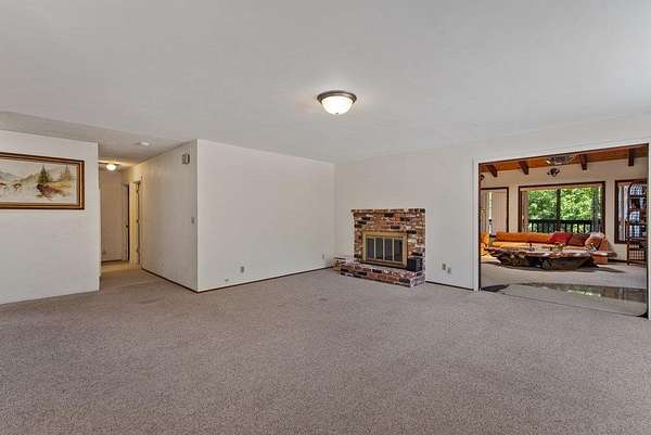 Sprawling 3,206 sq.ft., one story home on 2.5 acres, bordering the Santa Cruz and Scotts Valley areas. Great commuter location to UCSC and the San Jose area. Four bedrooms and a bonus room currently used as a 5th bedroom. Four full baths, Large living room, currently divided as a living area with wet bar and fireplace, also a sitting area by the main entrance, off the kitchen. There is a great room with fireplace open to the dining area and kitchen, a great gathering area. A patio area off of the dining area offers opportunity for outdoor gatherings. Large primary bedroom has sliding glass door leading to an outdoor sitting area. This primary bedroom is handicap accessible. Huge laundry room adjacent to a pantry. Circular driveway, with carport parking for 4-6 cars and storage cabinets, and separate garage. Uncovered parking on the property for many more cars. Great large home that accommodates many people, or an investment property for renters, UCSC students.