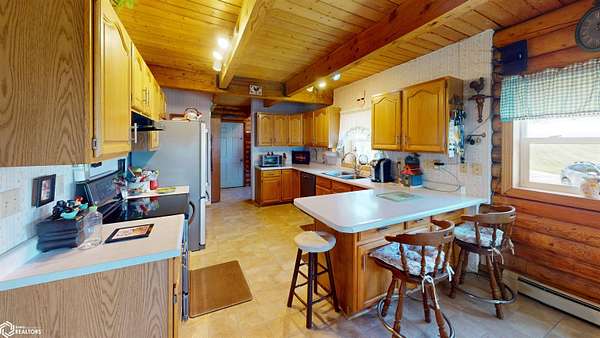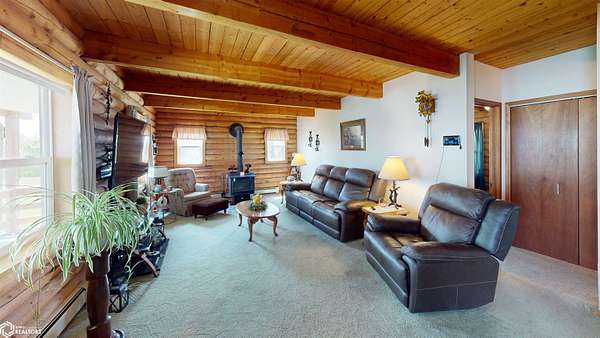 Discover the perfect blend of rustic charm and modern comfort with this beautifully crafted log home set on just under 5 acres. Nestled off a hard surface road for easy access year-round, this 4-bedroom, 2-bath home offers peaceful rural living without sacrificing convenience. Step inside to find warm wood finishes, an open living area, with a cozy wood stove that invites relaxation. The spacious kitchen and a dining area overlooks the scenic outdoors. Generously sized bedrooms with plenty of storage throughout the home. Outside, enjoy quiet mornings on one of the covered porches or afternoons by the pond. This one-of-a-kind property combines the timeless beauty of log construction with the tranquility of rural living.