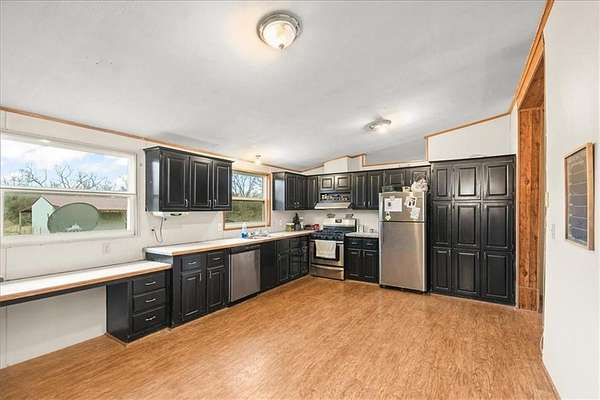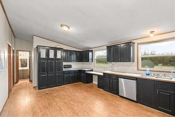 Your little slice of heaven at an affordable price! This 3bdrm, 2bath ranch style home sitting on 2.1 acres offers main floor living, 2 outbuildings and is fenced for livestock. Sitting just on the edge of town this home offers quiet country living with plenty of space, privacy and opportunities. Inside there is so much space, every room in the house is has plenty of room and a nice open feel. The large living room has double doors to the back deck and the formal dining area has room for a large dining table and hutch. The spacious kitchen has so much counter space and there is no shortage of storage with 2 double pantries. The primary suite has plenty of room for a king size bed, has a walk in closet and private bath. On the other end of the home are the other 2 bedrooms, the main bath and the main floor laundry area. Limited home maintenance with the vinyl siding and metal roof. The double car detached garage is 25x29 with concrete floor, electric and shelving. Almost half the property is fenced for livestock and there is a 15x23 outbuilding with 2 15ft lean to's, a concrete floor and electric can be hooked up. Being in town means rural water, city sewer and paved roads. If you have always wanted a couple of acres with country living at a good price, this is it!