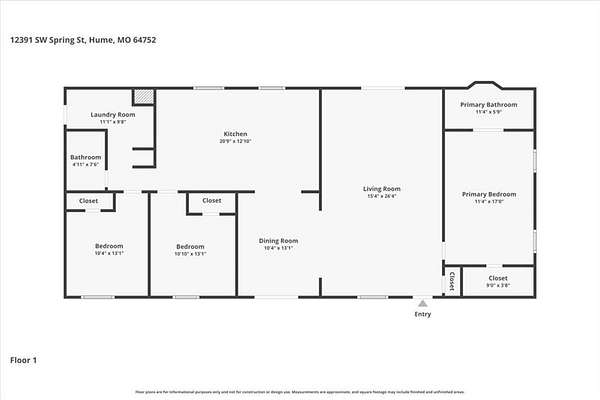 I49 south to exit 120 for Rich Hill. Go West on MO-A to Olive Street (in Hume). Go left or south on Olive to Spring. Right on Spring and house is right there.