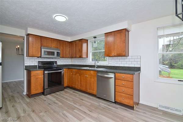 Welcome to your dream home in Chardon! This beautifully updated 4-bedroom, 2.5-bathroom gem is a perfect blend of modern amenities and classic charm. As you step inside, you'll be greeted by a spacious and inviting living room. The heart of this home is the stylish and functional eat-in kitchen, complete with contemporary appliances and ample counter space. Enjoy your meals in the separate dining area, perfect for entertaining friends and family. The whole main floor is complete with Luxury Vinyl Plank flooring. The sunroom bathes the home in natural light, creating a cozy and bright space for relaxation. The family room is a warm and inviting retreat, featuring a fireplace that adds a touch of elegance and comfort. With four generously sized bedrooms, all located on the second floor, there's plenty of space for everyone in the family. The master bedroom is a true sanctuary, boasting a full bath for added convenience and luxury. Another separate full bathroom also completes the second floor. The partially finished basement provides a laundry area and additional living space, perfect for a home office, gym, or entertainment area. This home is designed for both comfort and functionality, offering the perfect balance for your lifestyle. Outside, the expansive yard is a true oasis, offering endless possibilities for outdoor activities, gardening, or simply enjoying the beauty of nature. Imagine hosting summer barbecues, gardening in your own private haven, or stargazing on clear nights. Situated on 1.55 acres in the desirable Chardon location, you'll enjoy a private and peaceful neighborhood while being close to amenities and excellent schools. Don't miss the opportunity to make this beautifully updated home yours! Schedule a viewing today and envision the possibilities of living in this delightful home!
