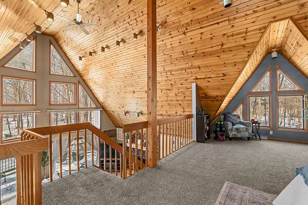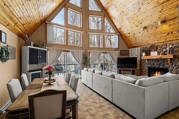 Est $2,228/moNestled on a secluded wooded lot, this beautiful A-Frame style home features grand entry with floor to ceiling window and fireplace. Large primary suite loft with walk-in closets, beautiful on suite bath, double sinks and convenient laundry facilities built into the suite. 2 large bedrooms on main, full bath. Lower level includes family room as well as extra storage areas, Amazing views, lots of deck space for entertaining and fully fenced yard. A must see!! Call today for your private showing.