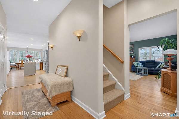 Welcome to 123a Peaceable St. West Redding, Connecticut | 4 Bedrooms | 3,594 Square Feet | 2.62 Private Acres Tucked away at the end of a quiet cul-de-sac in highly desirable West Redding, this classic Colonial offers the rare combination of privacy, scale, and opportunity. Set on 2.62 lightly wooded acres with stone walls. Built in 1988 and offering 3,594 square feet above grade, the home unfolds with generous proportions and a traditional, yet flowing layout. The heart of the home includes an expansive kitchen and breakfast nook, a gracious dining area, formal living spaces, and a large family room anchored by one of three fireplaces. Upstairs, four bedrooms, including a spacious primary suite with walk-in closet and bath, provide flexibility for today's lifestyle. A full basement offers substantial storage or future finishing potential, while a three-car attached garage enhances convenience. Natural light fills the home, and the scale of the rooms speaks to quality construction and thoughtful design. At the same time, this property presents an exciting opportunity for its next chapter. Kitchens and baths may be reimagined to reflect modern tastes, and cosmetic updates will unlock tremendous value. The setting and square footage provide a strong foundation for transformation. This is an opportunity to create a personalized retreat in one of Fairfield County's most desirable towns. With space, location, and long-term upside.